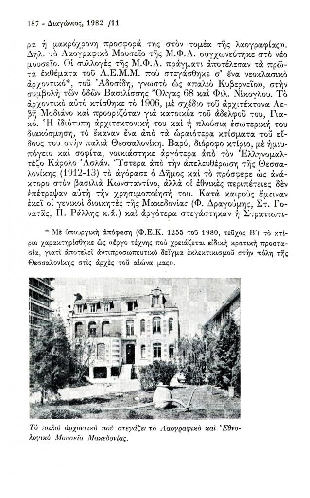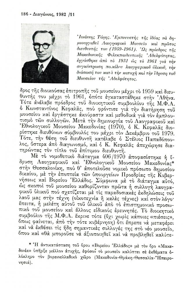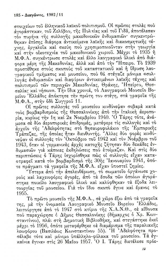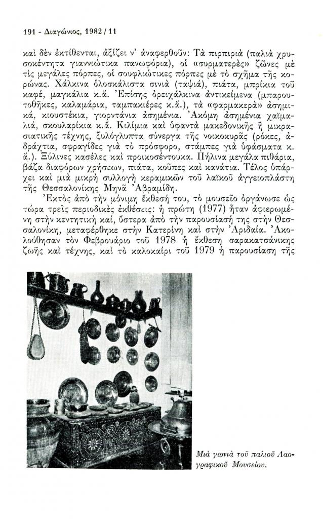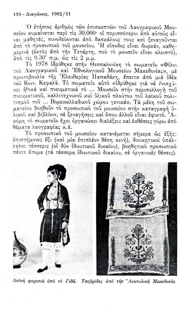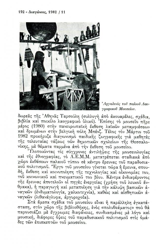 Κορδομενίδης Γιώργος, «Το Λαογραφικό και Εθνολογικό Μουσείο Μακεδονίας», Διαγώνιος, τχ. 11 (Μάιος-Αύγουστος 1982), σ. 184-196
