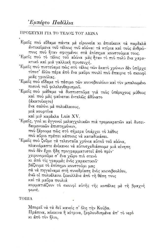 , «Προσευχή για το τέλος του αιώνα»,