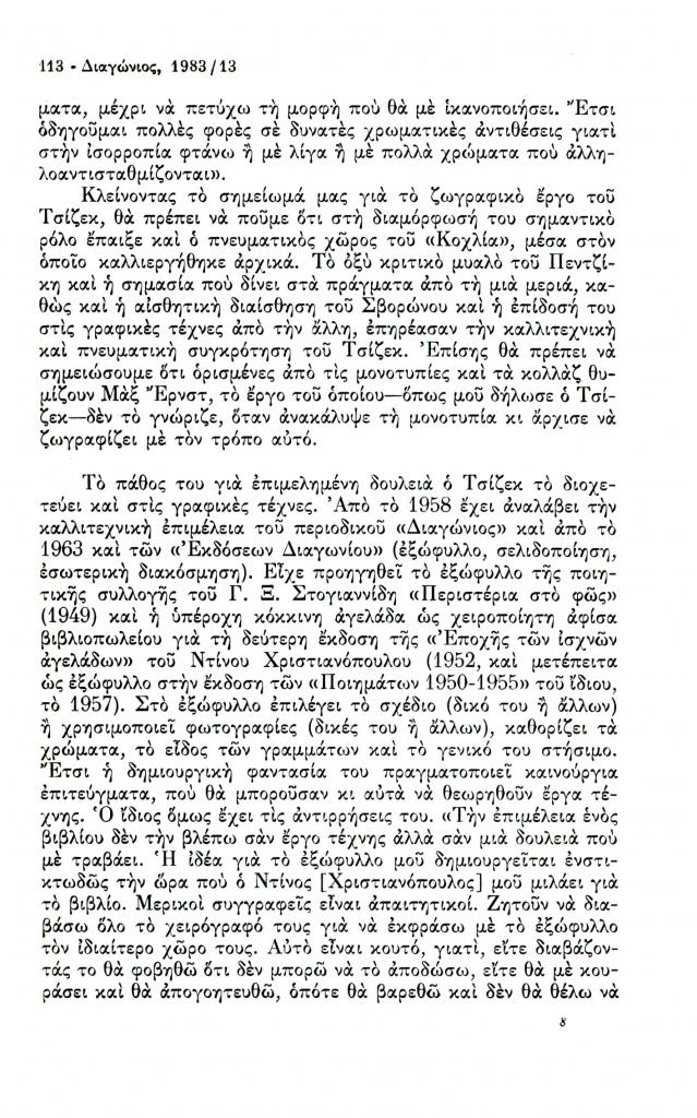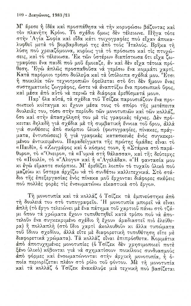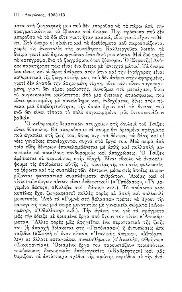 Σφυρίδης Περικλής, «Κάρολος Τσίζεκ», Διαγώνιος, τχ. 13 (Ιανουάριος-Απρίλιος 1983), σ. 108-114