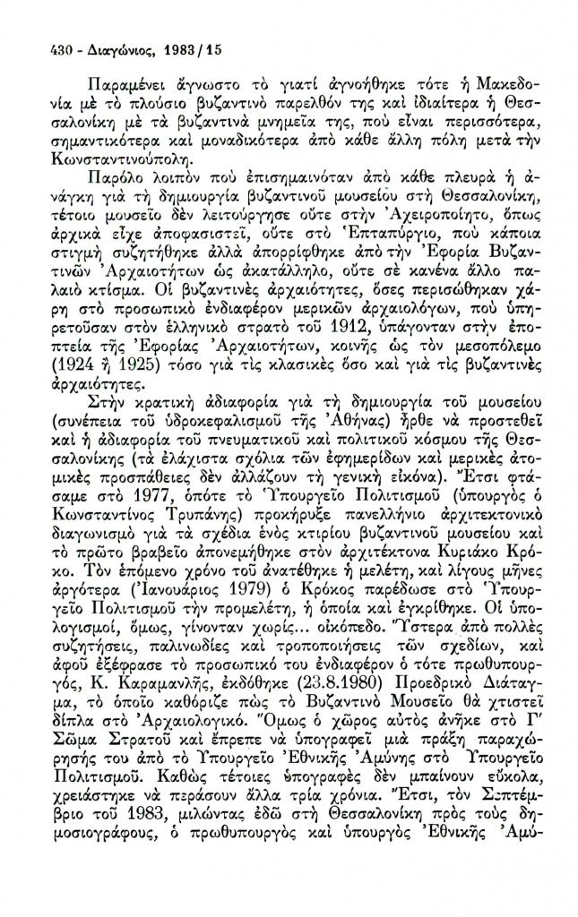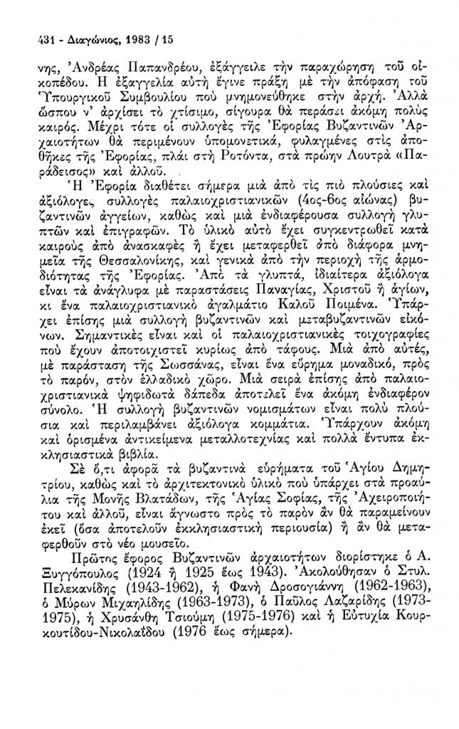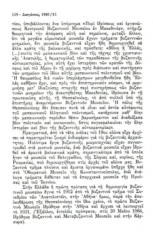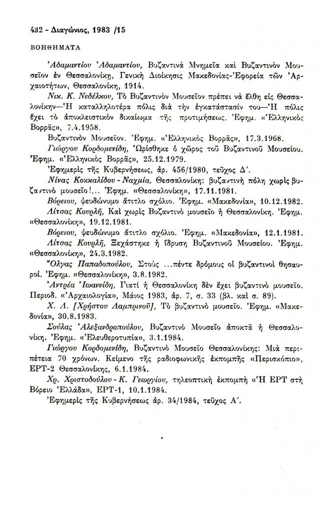 , «Γύρω από την ίδρυση Βυζαντινού Μουσείου στη Θεσσαλονίκη», Διαγώνιος, τχ. 15 (Σεπτέμβριος-Δεκέμβριος 1983), σ. 428-432