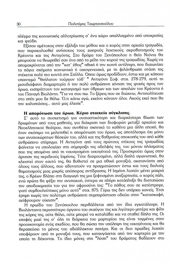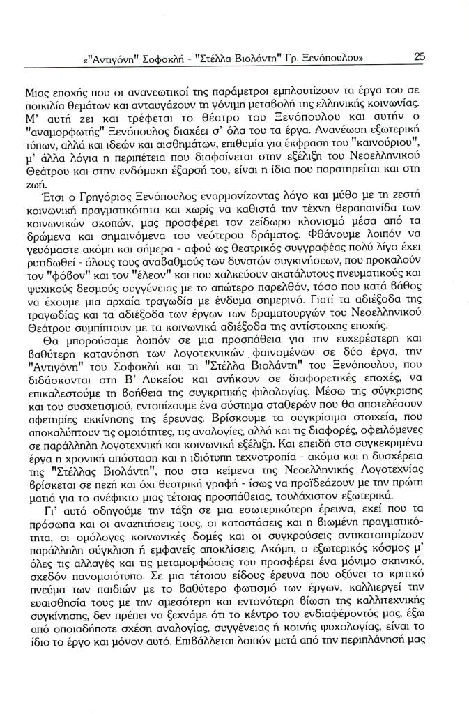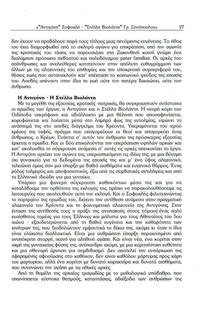 , «Αντιγόνη Σοφοκλή Στέλλα ΒιολάντηΓ ρ. Ξενόπουλου. Ένας συσχετισμός», Έκφραση, τόμ. 3, τχ. 3 (Οκτώβριος 1991), σ. 23-32