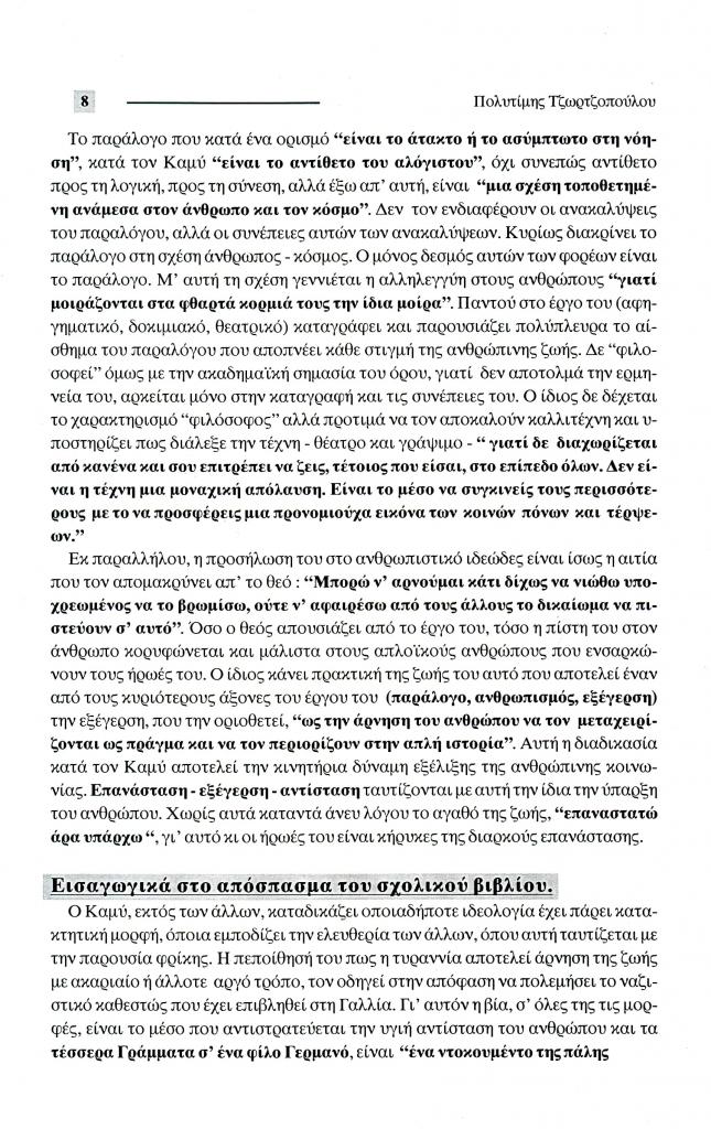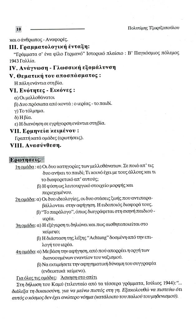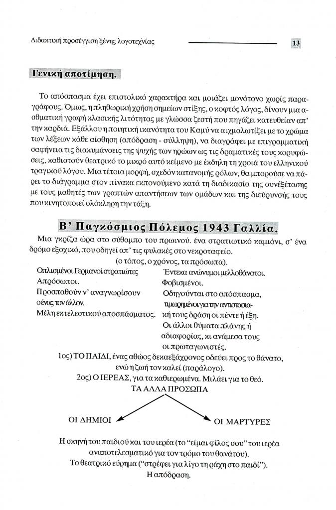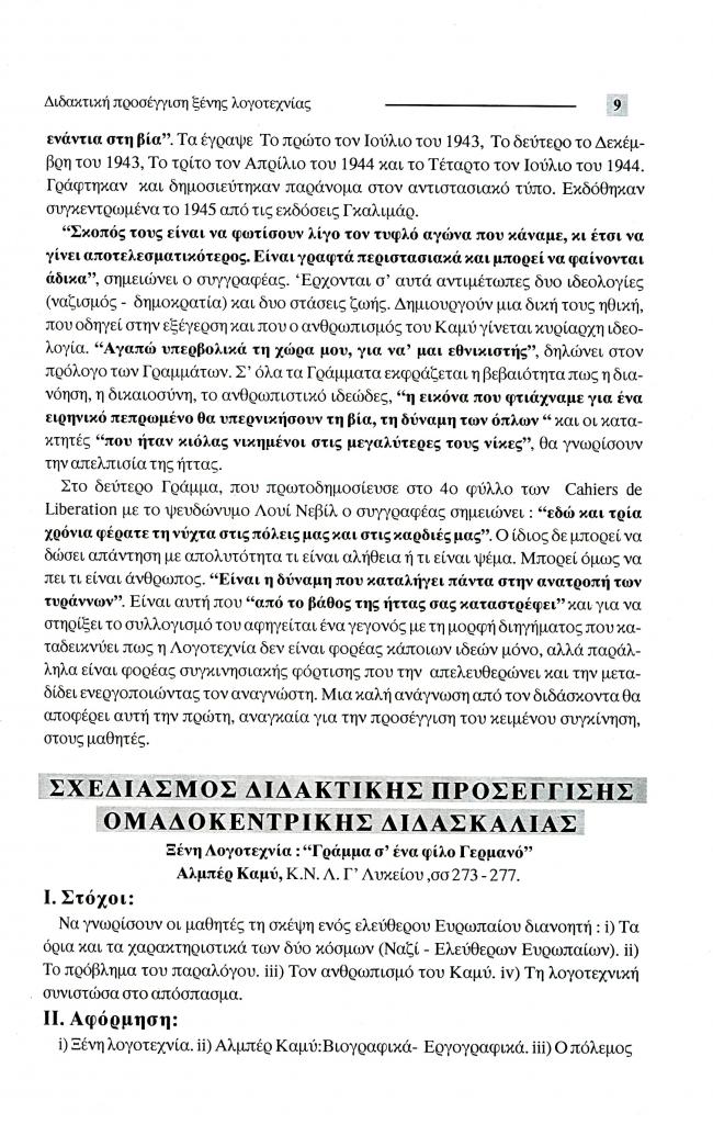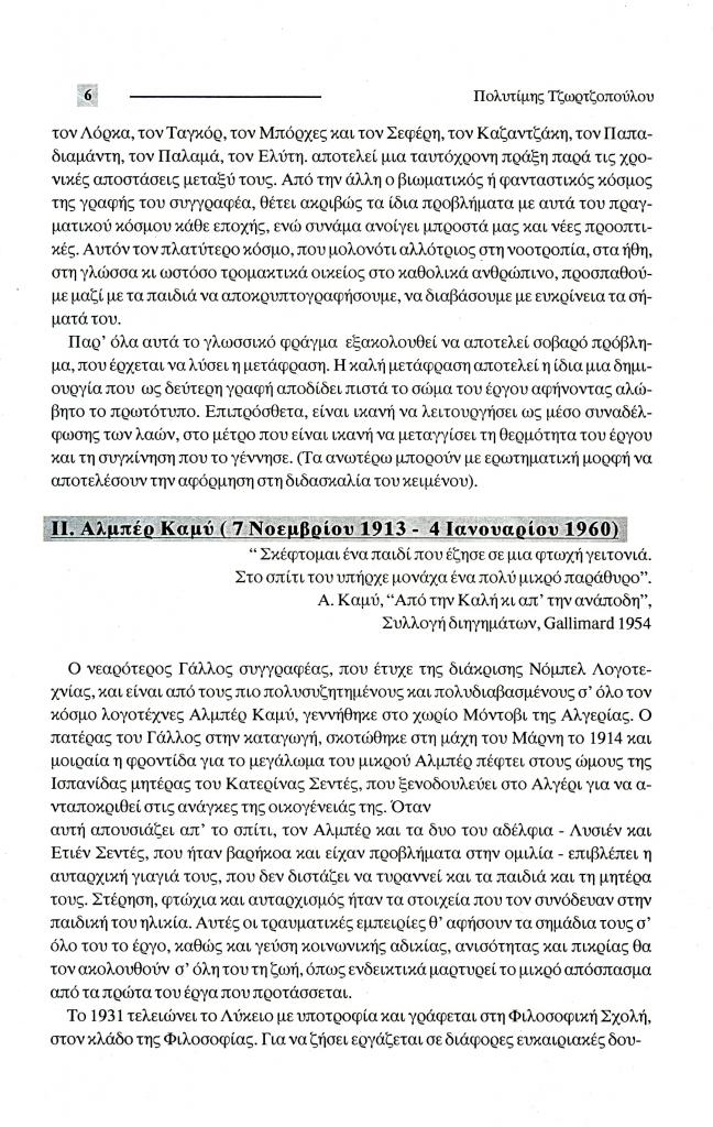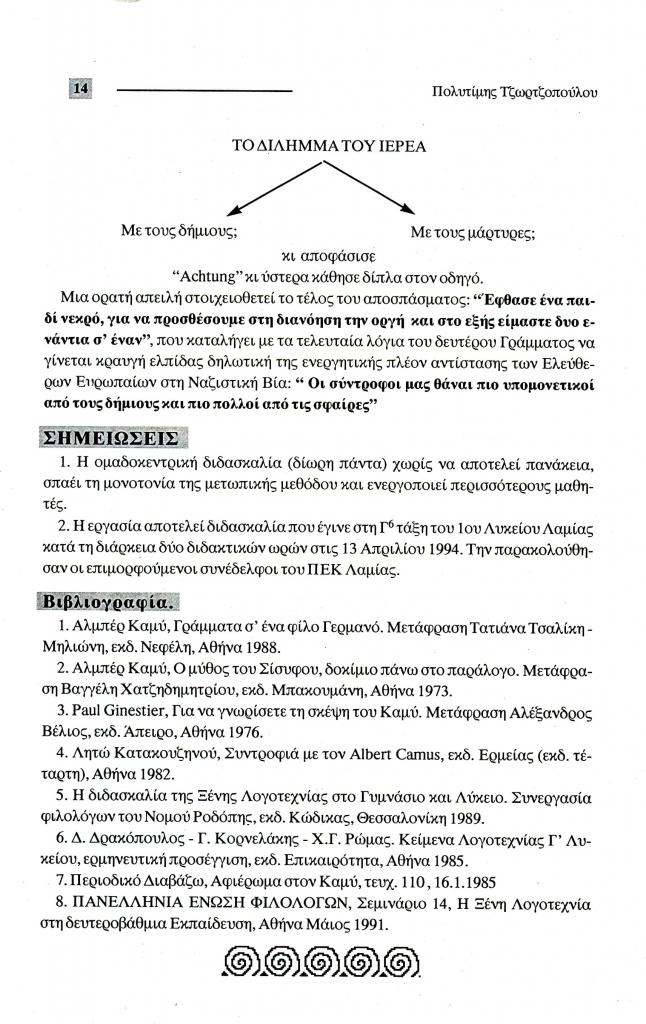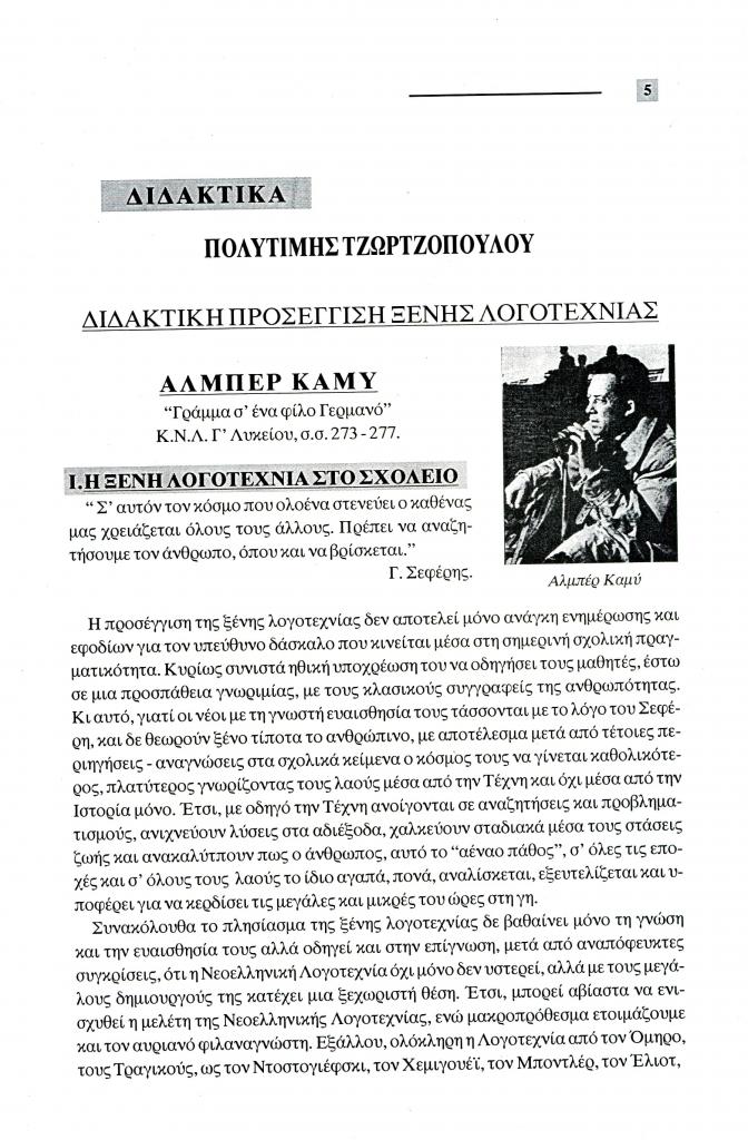 Τζωρτζοπούλου Πολυτίμη, «Διδακτική προσέγγιση ξένης λογοτεχνίας. Αλμπέρ Καμύ, Γράμμα σ' ένα φίλο Γερμανό», Έκφραση, τόμ. 8, τχ. 8 (Ιούλιος 1996), σ. 5-14