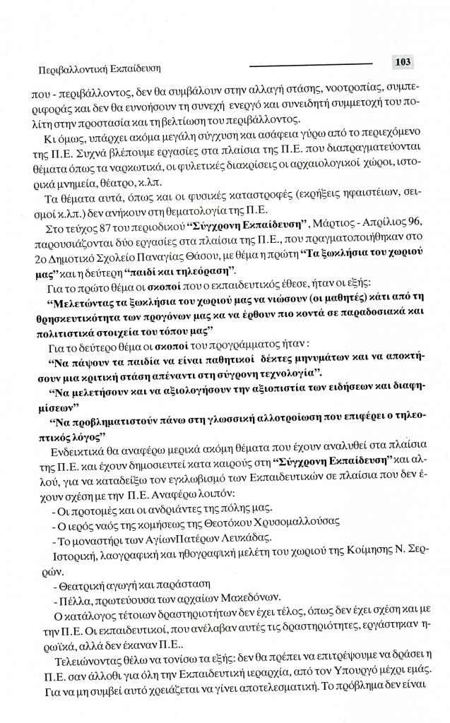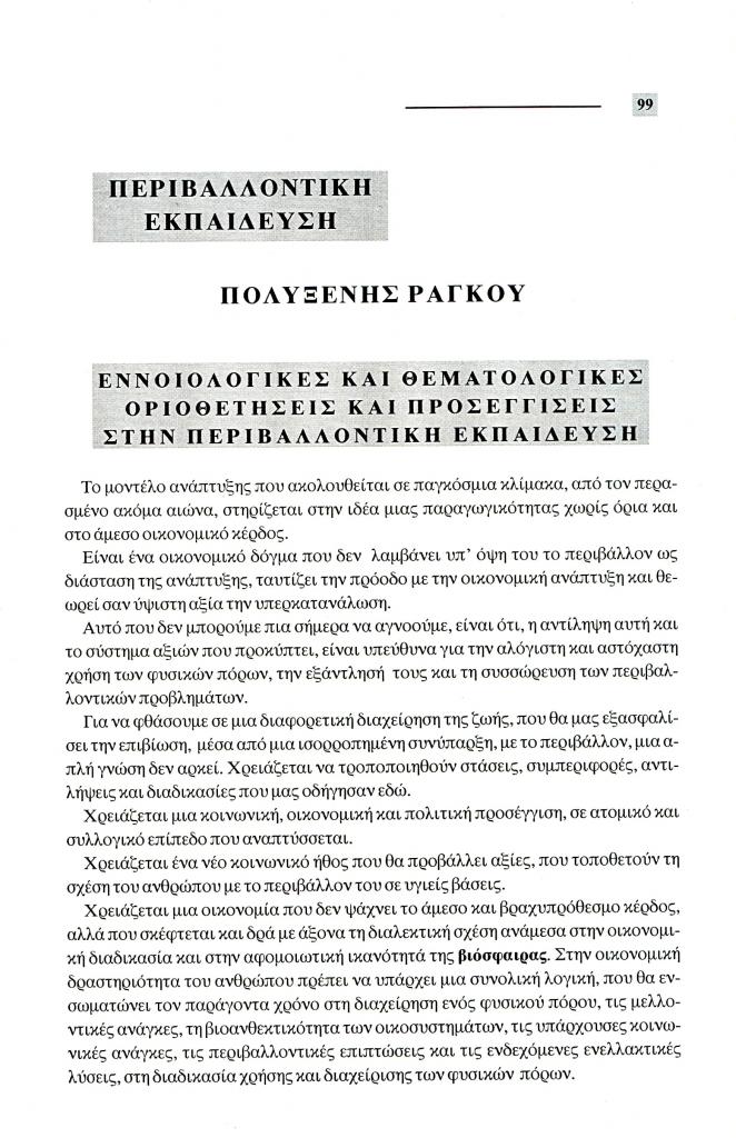 , «Εννοιολογικές και θεματολογικές οριοθετήσεις και προσεγγίσεις στην περιβαλλοντική εκπαίδευση», Έκφραση, τόμ. 8, τχ. 8 (Ιούλιος 1996), σ. 99-104