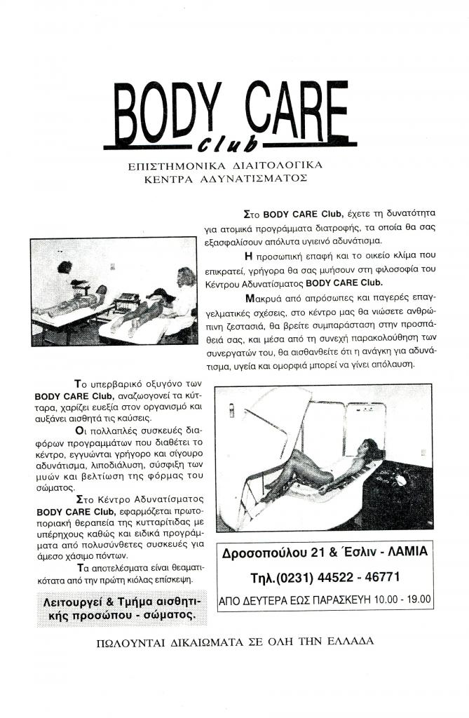 «Body care club», Έκφραση, τόμ. 9, τχ. 9 (Νοέμβριος 1997), σ. 93