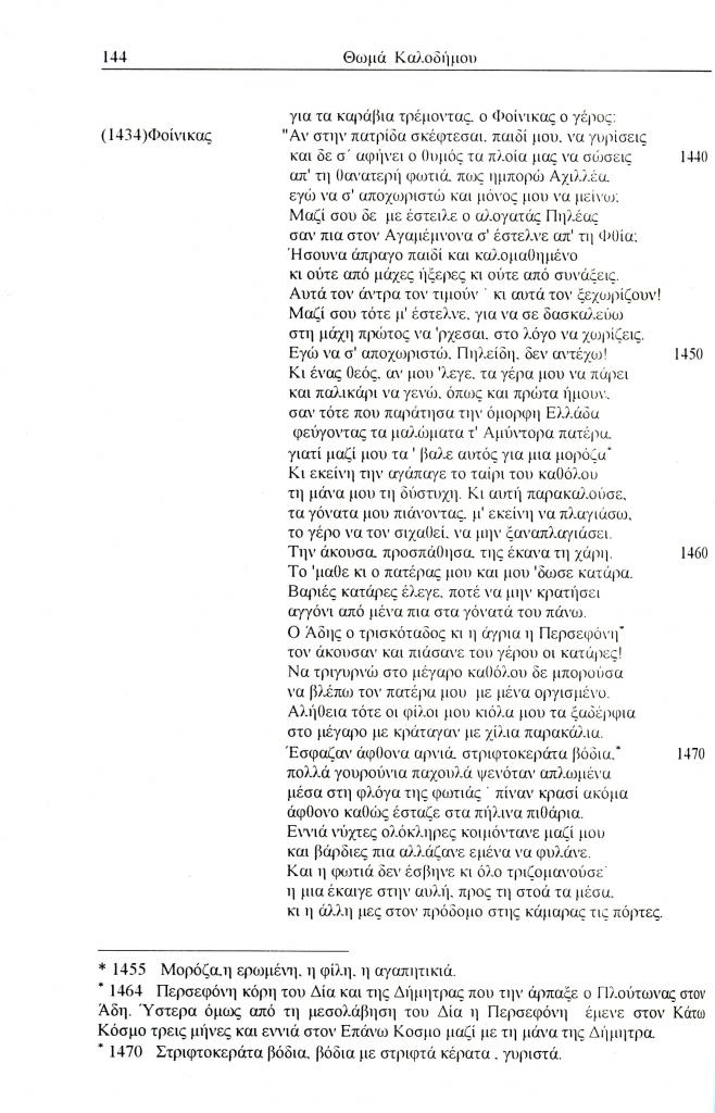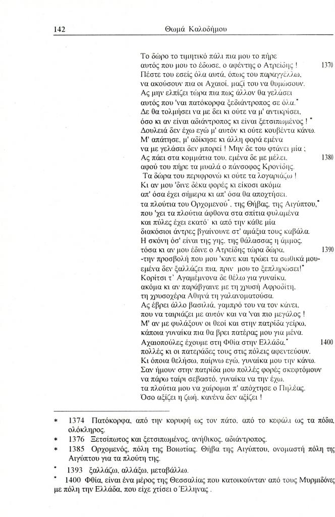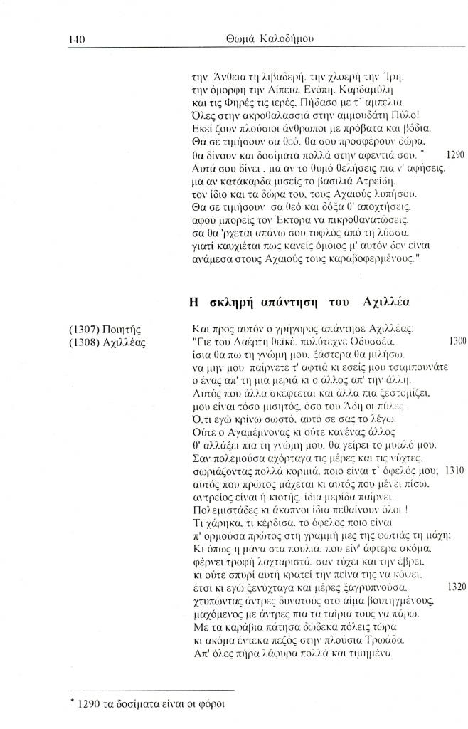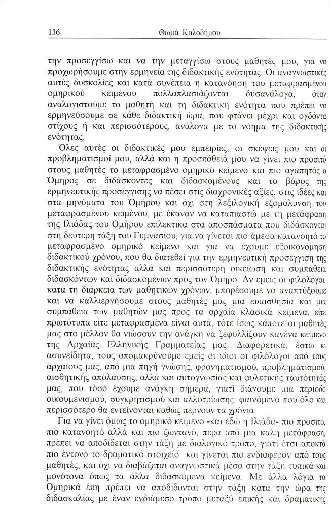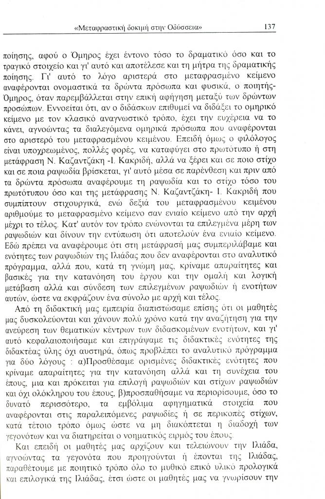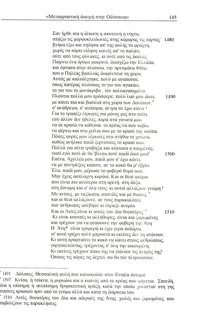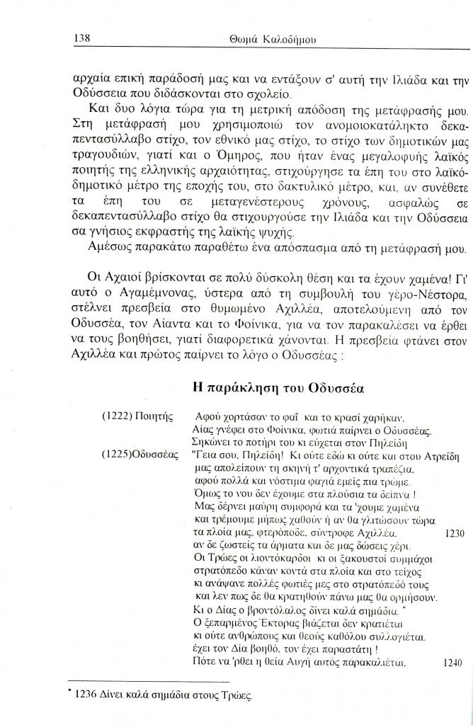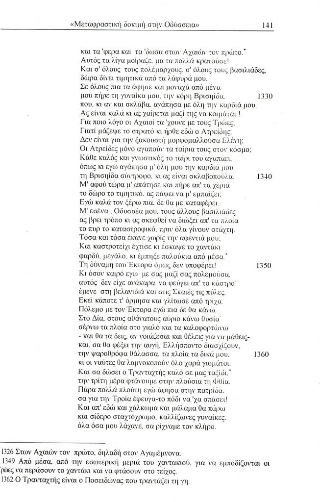 Καλοδήμος Θωμάς, «Μεταφραστική δοκιμή στην Οδύσσεια (στ. 1222-1597)», Έκφραση, τόμ. 10, τχ. 10 (Οκτώβριος 1999), σ. 135-148