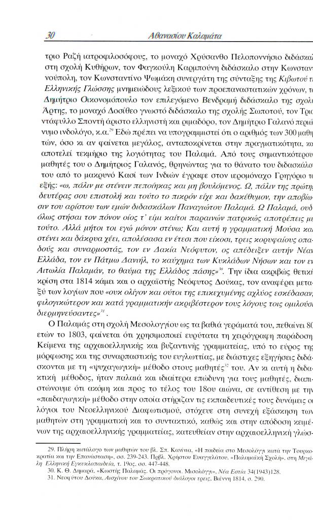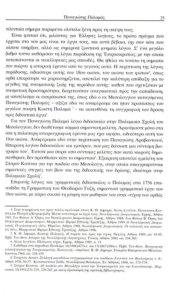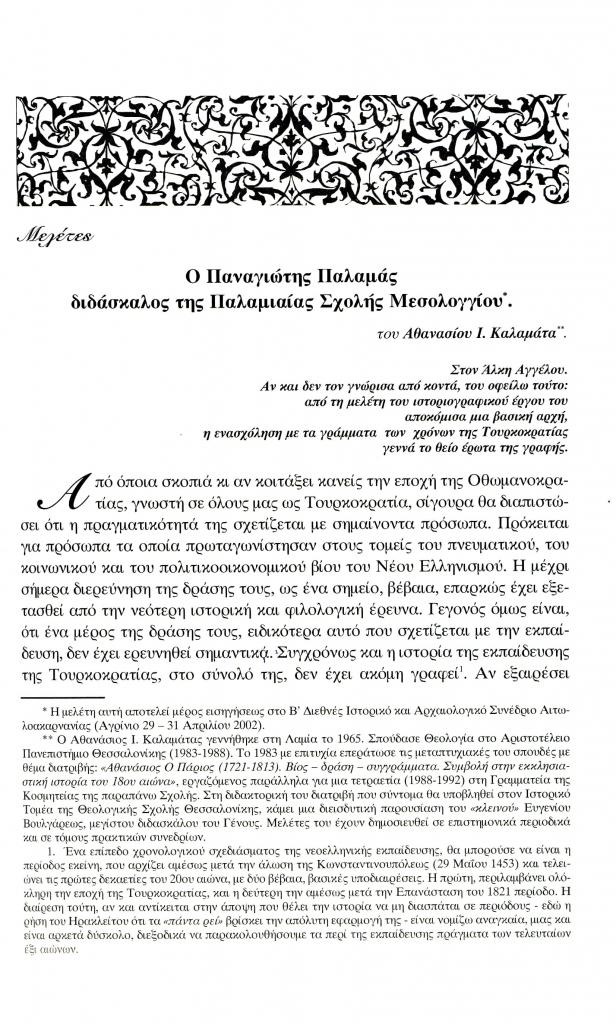 , «Ο Παναγιώτης Παλαμάς διδάσκαλος της Παλαμιαίας Σχολής Μεσολογγίου», Έκφραση, τόμ. 13, τχ. 13 (Δεκέμβριος 2002), σ. 23-32