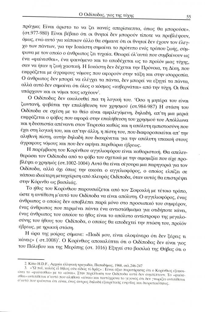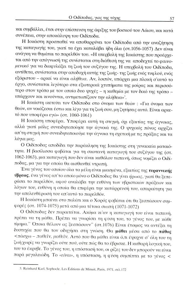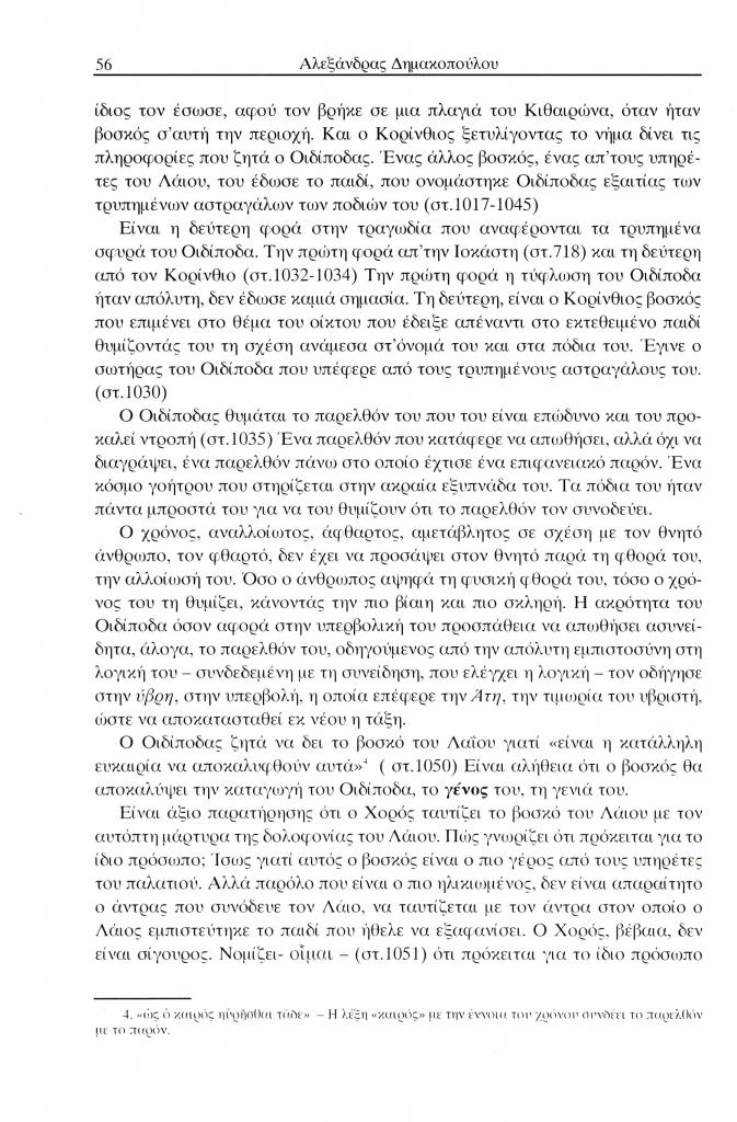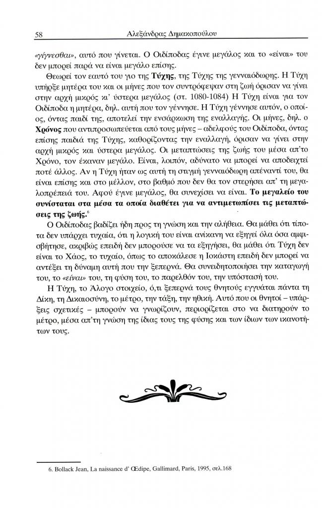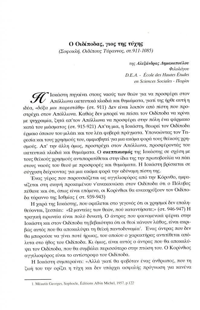 Δημακοπούλου Αλεξάνδρα, «Ο Οιδίποδας, γιoς της τύχης (Σοφοκλή, Οιδίπους Τύραννος, στ. 911-1085)», Έκφραση, τόμ. 13, τχ. 13 (Δεκέμβριος 2002), σ. 54-58