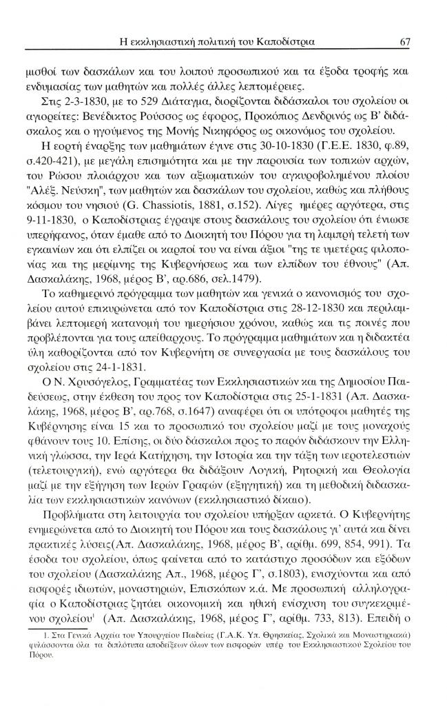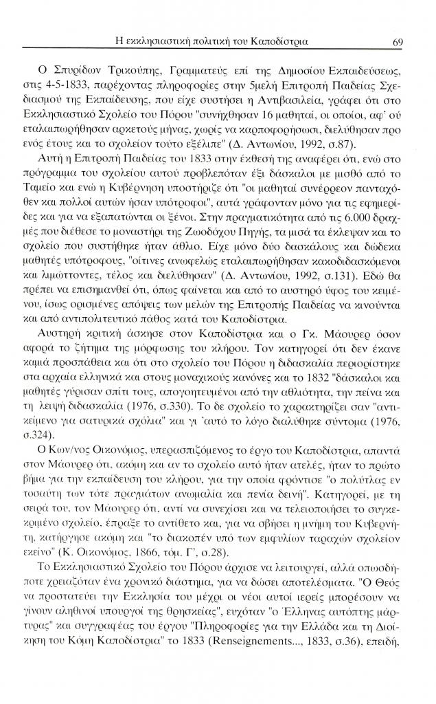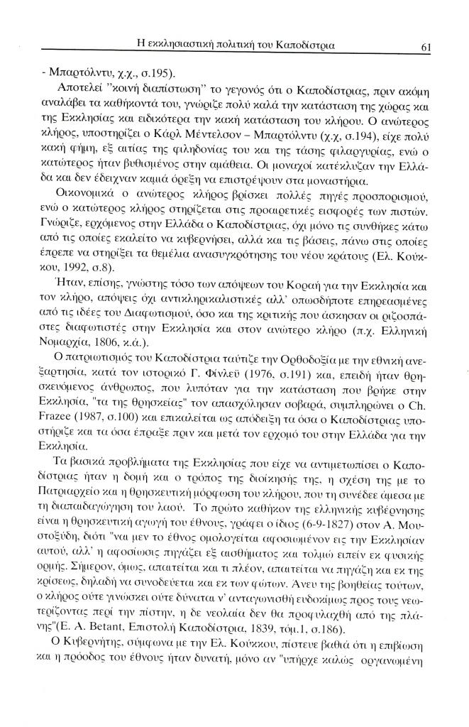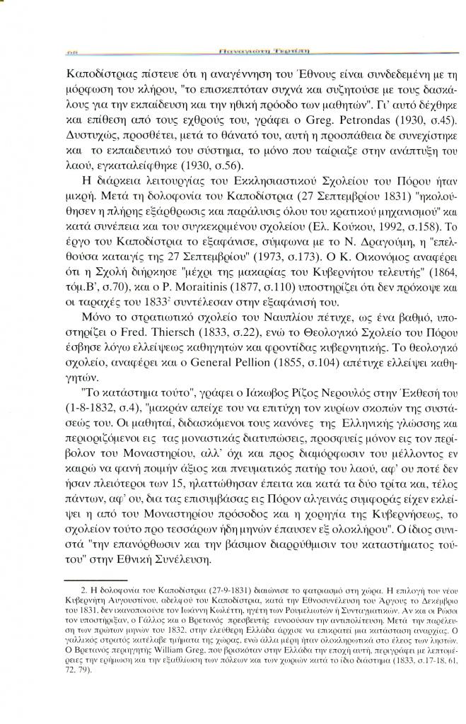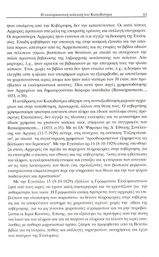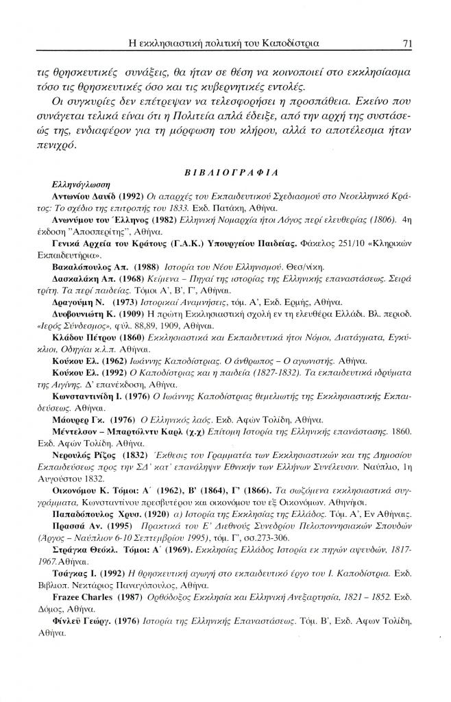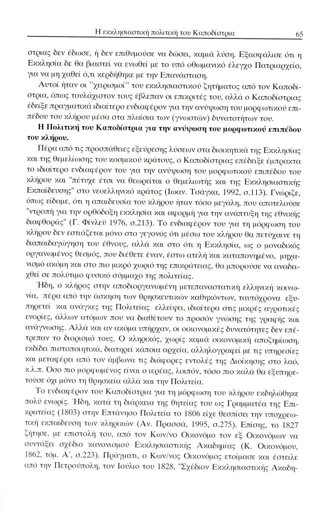 Τερτίπης Παναγιώτης, «Η εκκλησιαστική πολιτική και το ενδιαφέρον του Ιωάννη Καποδίστρια για τη μόρφωση του κλήρου», Έκφραση, τόμ. 13, τχ. 13 (Δεκέμβριος 2002), σ. 59-72