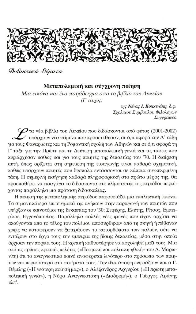, «Μεταπολεμική και σύγχρονη ποίηση»,