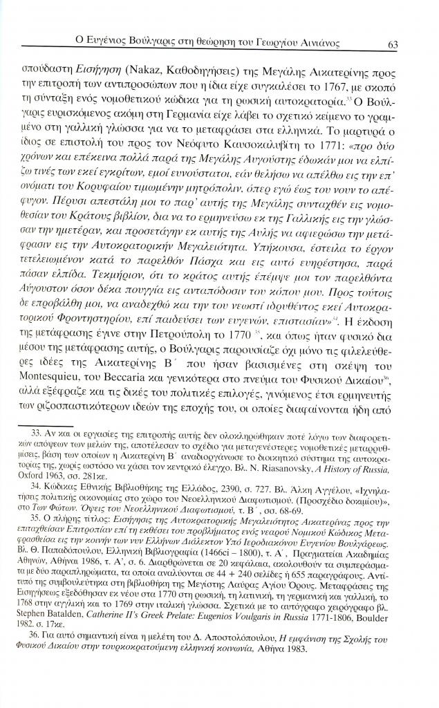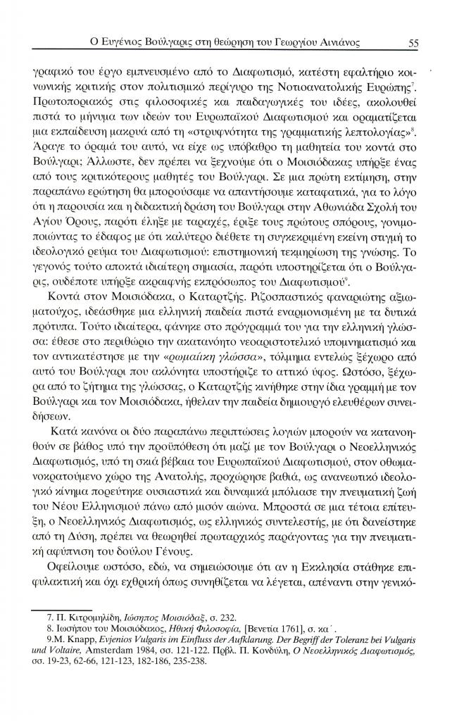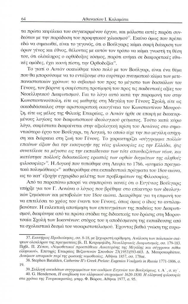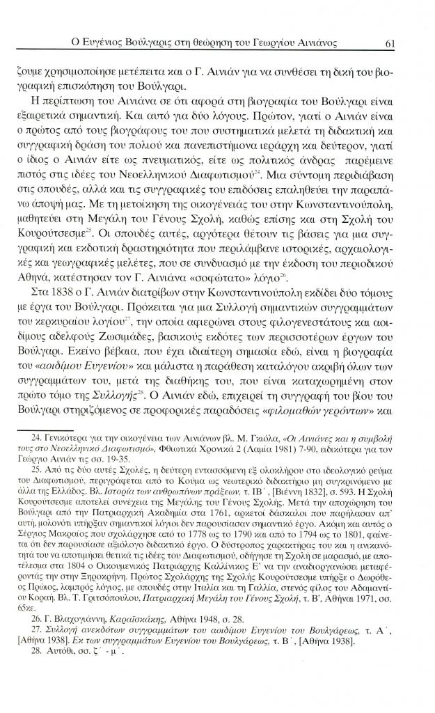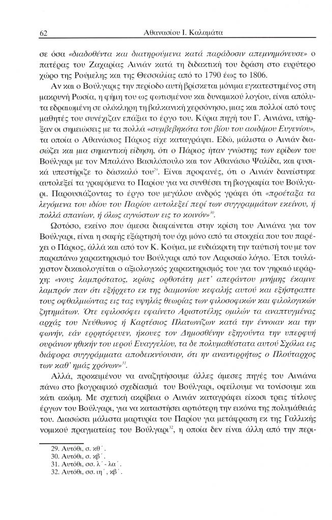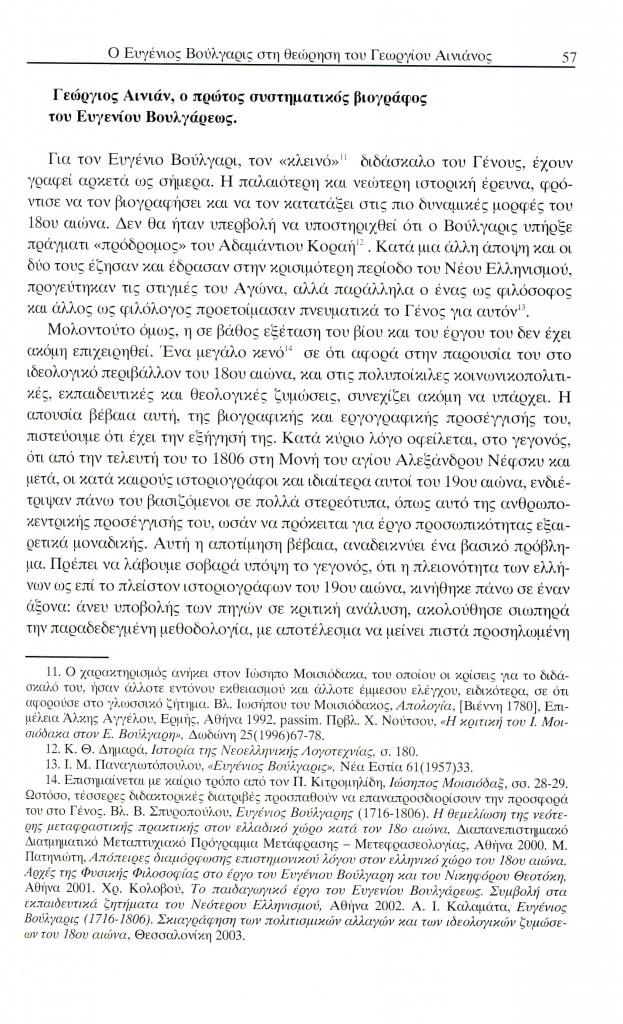 Καλαμάτας Αθανάσιος Ι., «Ο Ευγένιος Βούλγαρης στη θεώρηση του Γεωργίου Αινιάνος», Έκφραση, τόμ. 14-15, τχ. 14-15 ( 2004), σ. 53-65