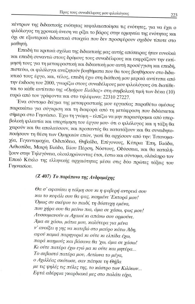, «Προς τους συναδέλφους μου φιλολόγους»,