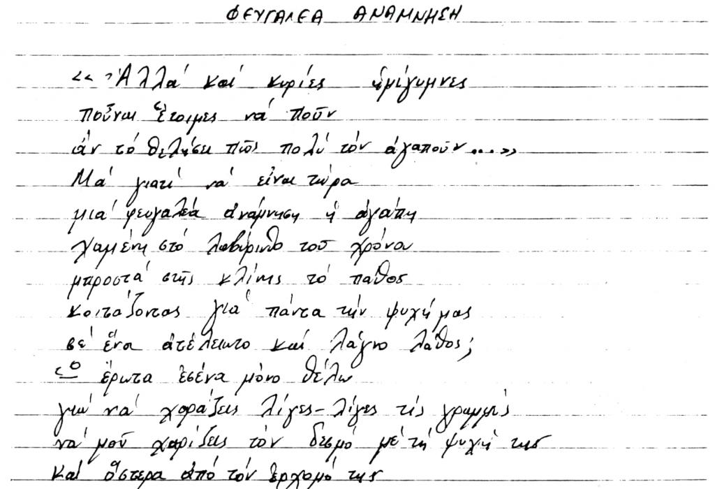 Παυλίδης Αντώνης Λ., «Αντώνης Λ. Παυλίδης. Μικρό αφιέρωμα. Φευγαλέα ανάμνηση», Εταιρία, τχ. 3 (Φεβρουάριος 1990), σ. 8-9