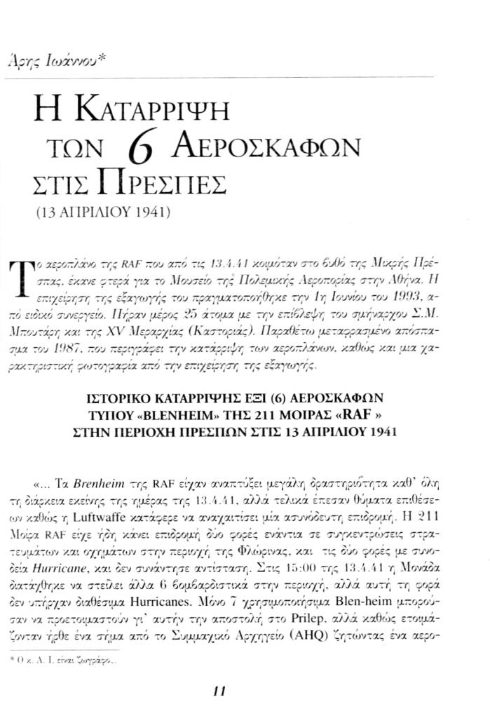 , «Η κατάρριψη των 6 αεροσκαφών στις Πρέσπες (13 Απριλίου 1941)»,