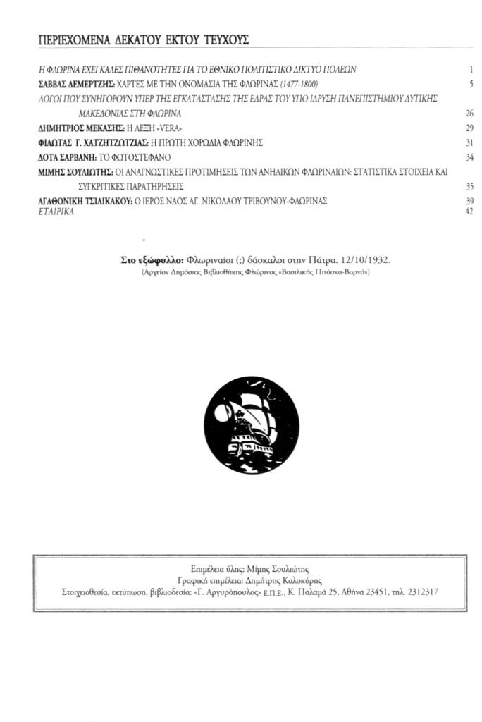 «Περιεχόμενα δέκατου έκτου τεύχους»,