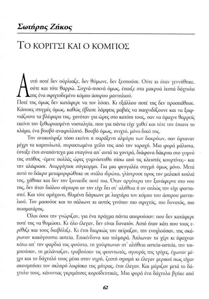 Ζήκος Σωτήρης, «Το κορίτσι και ο κόμπος», Εταιρία, τχ. 17-18 (Δεκέμβριος 1994), σ. 62-64