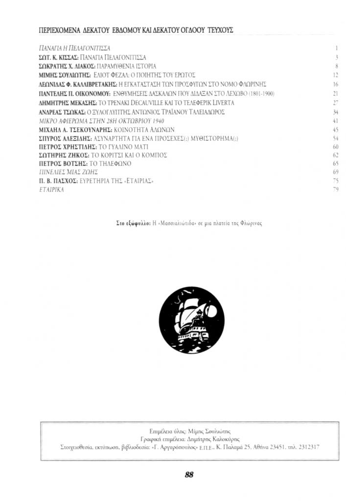 «Περιεχόμενα δεκάτου εβδόμου και δεκάτου ογδόου τεύχους»,