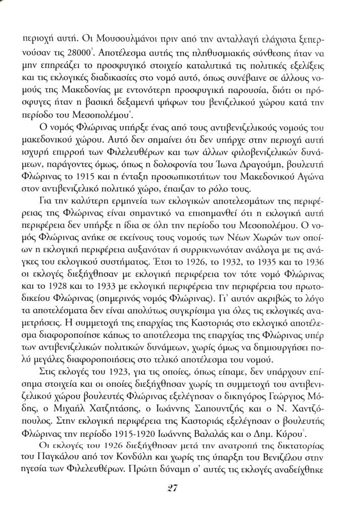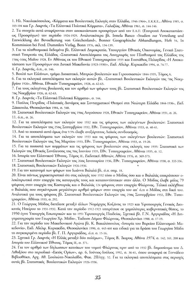 , «Πολιτικές δυνάμεις και κοινοβουλευτική εκπροσώπηση στην εκλογική περιφέρεια της Φλώρινας (1923-1936)», Εταιρία, τχ. 19 (Μάρτιος 1995), σ. 26-35