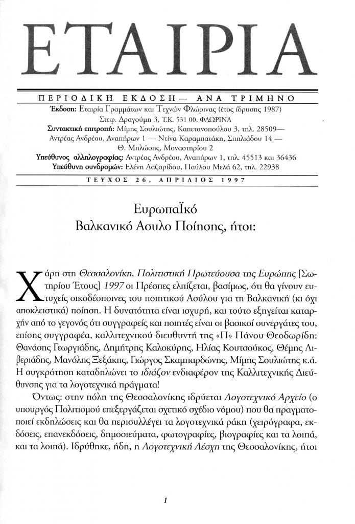, «Ευρωπαϊκό Βαλκανικό Άσυλο Ποίησης, ήτοι:»,