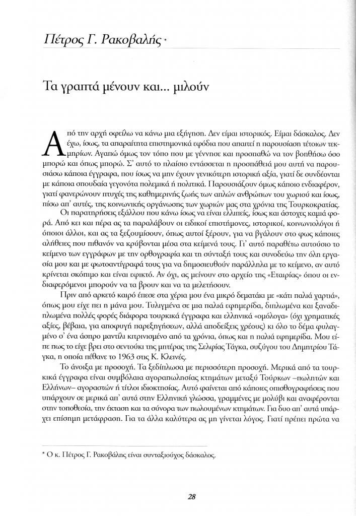 Ρακοβαλής Πέτρος Γ., «Τα γραπτά μένουν και… μιλούν», Εταιρία, τχ. 26 (Απρίλιος 1997), σ. 28-38