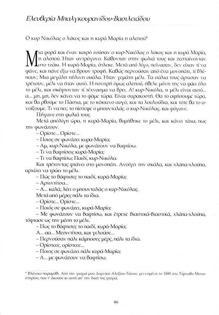 , «Ο κυρ Νικόλας ο λύκος και η κυρά Μαρία η αλεπού»,