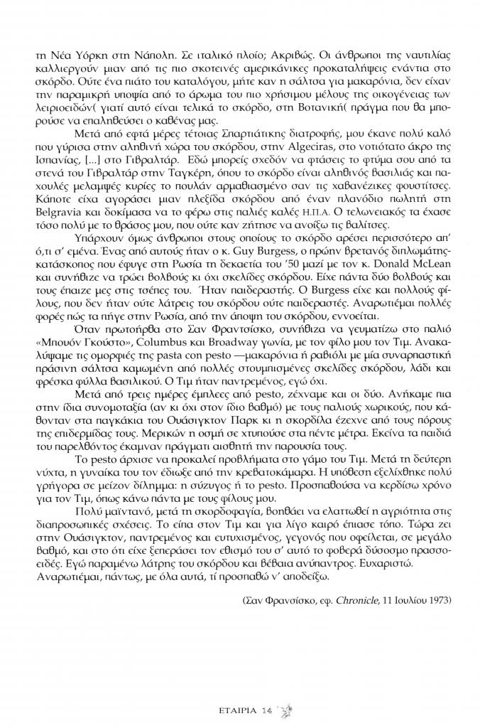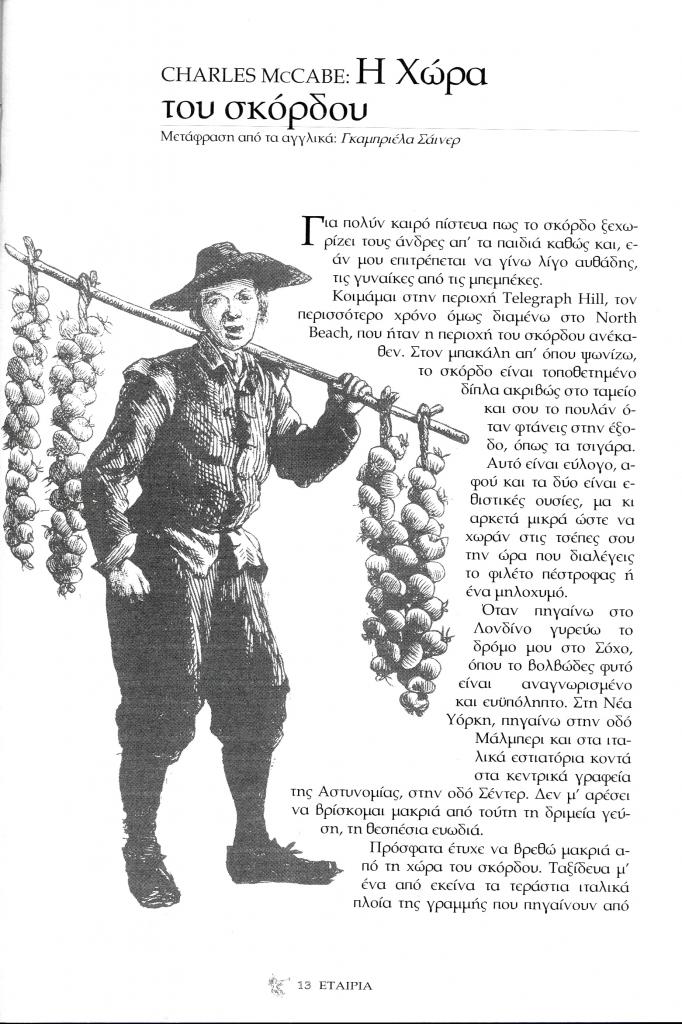 McCabe Charles, «Σκορδοκαΐλεια έτους 1999 και εξής. Η χώρα του σκόρδου», Εταιρία, τχ. 32 (Μάιος 1998), σ. 13-14