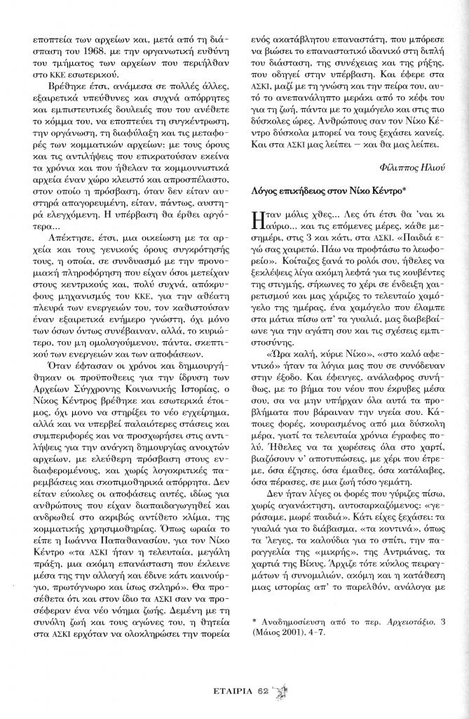 , «Εταιρικά. Ο Νίκος Κέντρος. Αρχεία Σύγχρονης Κοινωνικής Ιστορίας»,