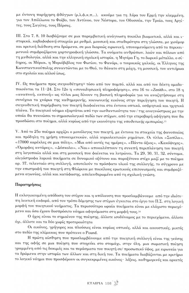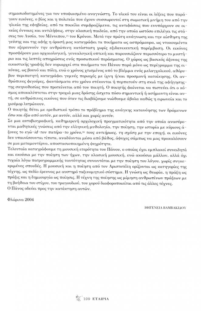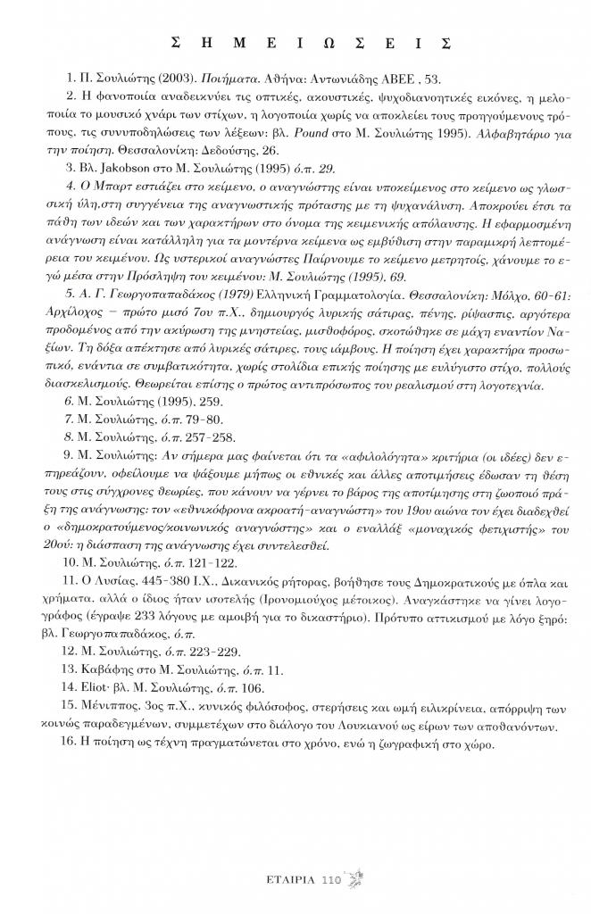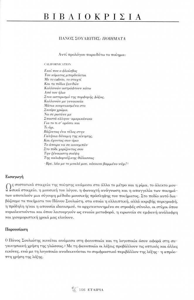Βαμβακίδου Ιφιγένεια, «Βιβλιοκρισία. Πάνος Σουλιώτης: Ποιήματα», Εταιρία, τχ. 38-39 (Δεκέμβριος 2004), σ. 105-110