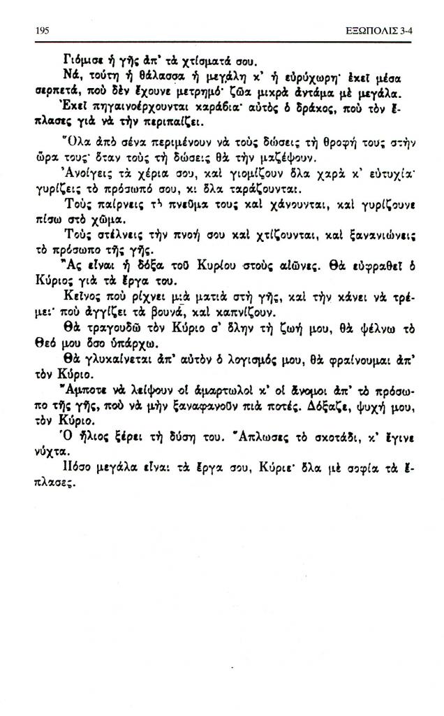 , «Δοκιμές για μετάφραση. Προοιμιακός ψαλμός Ργ΄ (103)»,