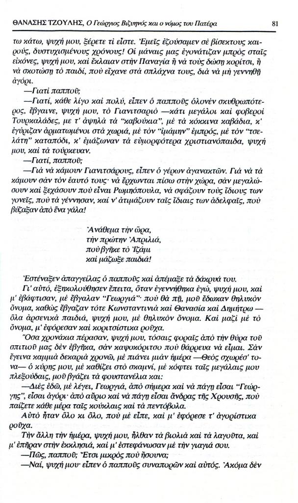 , «Ο Γεώργιος Βιζυηνός και ο νόμος του πατέρα (συνέχεια μιας ψυχαναλυτικής ανάγνωσης)», Εξώπολις, τχ. 5 (Καλοκαίρι 1996), σ. 75-84