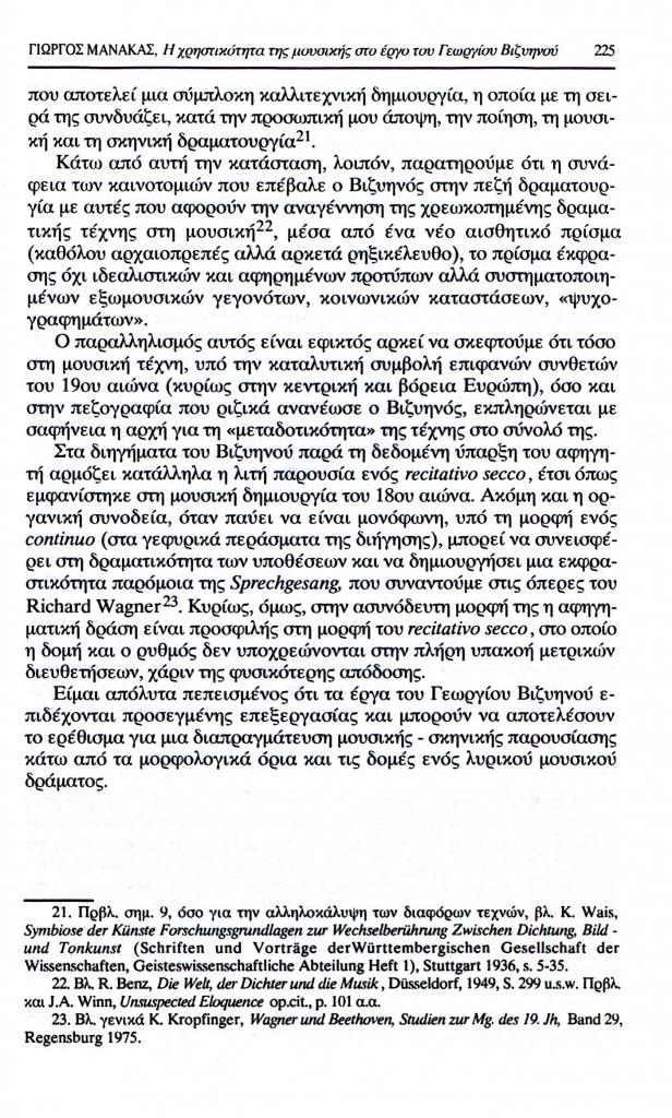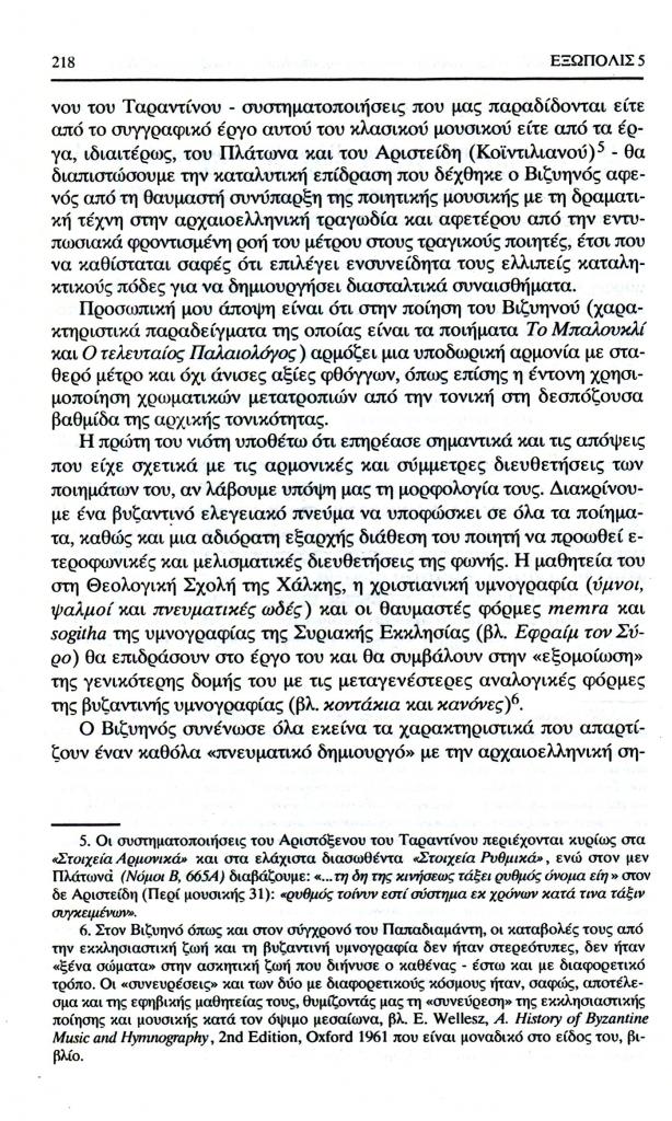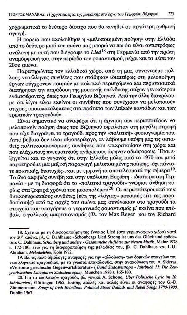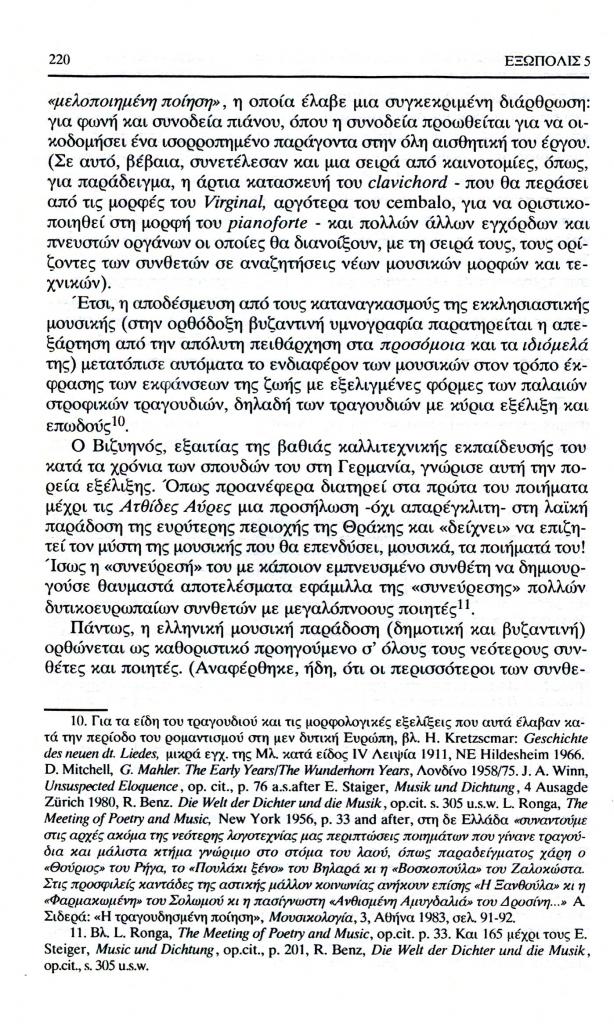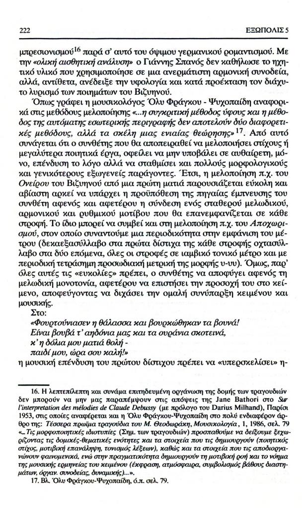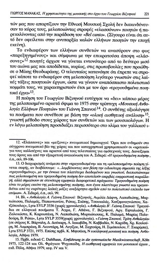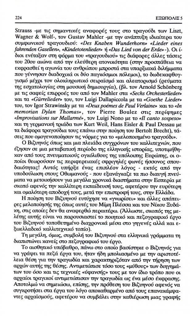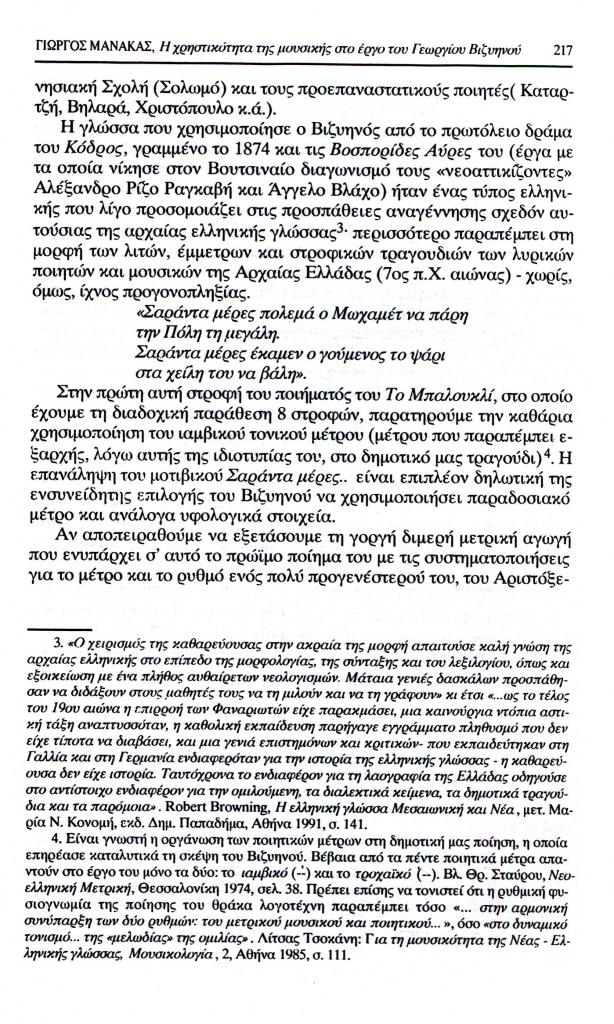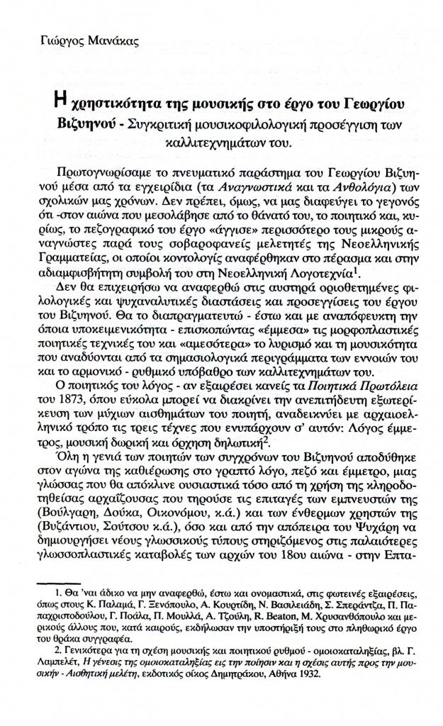 , «Η χρηστικότητα της μουσικής στο έργο του Γεωργίου Βιζυηνού – Συγκριτική μουσικοφιλολογική προσέγγιση των καλλιτεχνημάτων του», Εξώπολις, τχ. 5 (Καλοκαίρι 1996), σ. 216-225