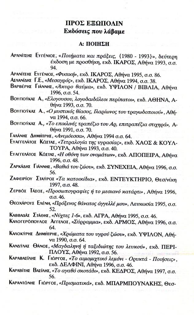 , «Προς Εξώπολιν: Εκδόσεις που λάβαμε»,