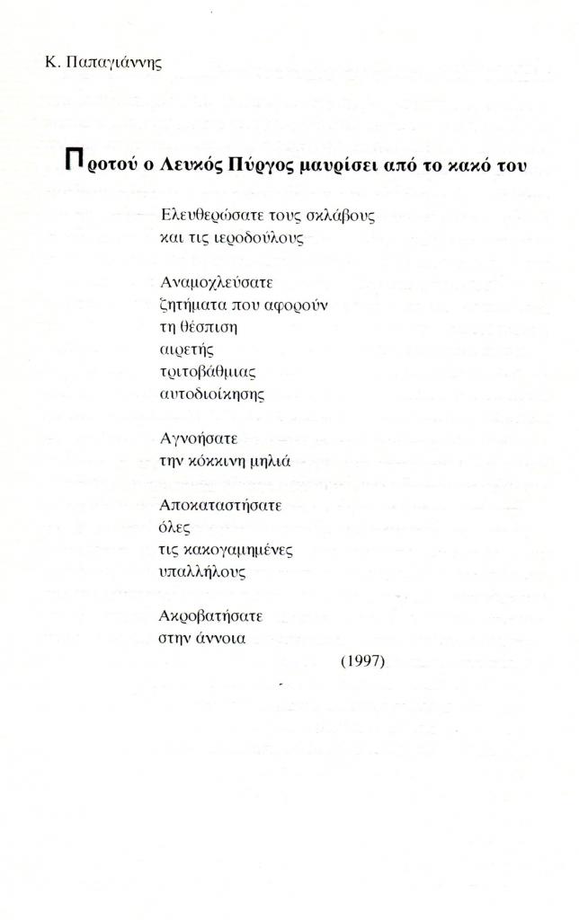 , «Ποιήματα. Προτού ο Λευκός Πύργος μαυρίσει από το κακό του»,