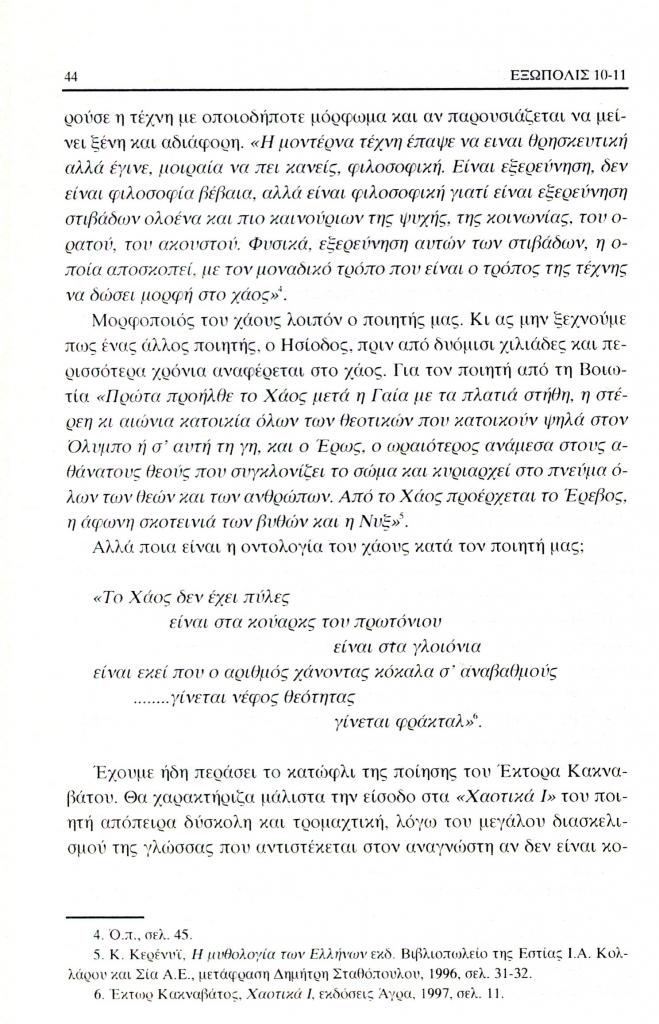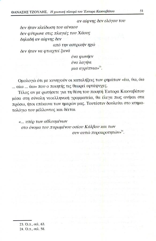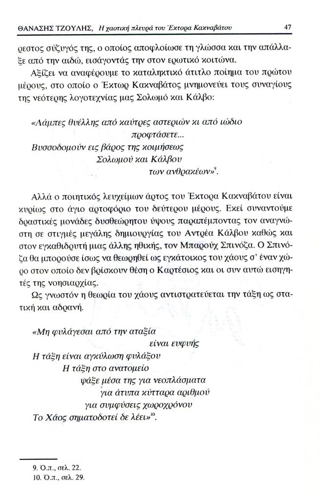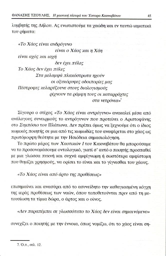 , «Η χαοτική πλευρά του Έκτορα Κακναβάτου ή η εφτάψυχη γλώσσα»,