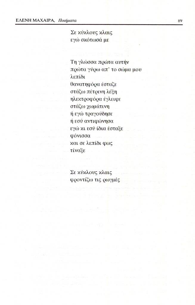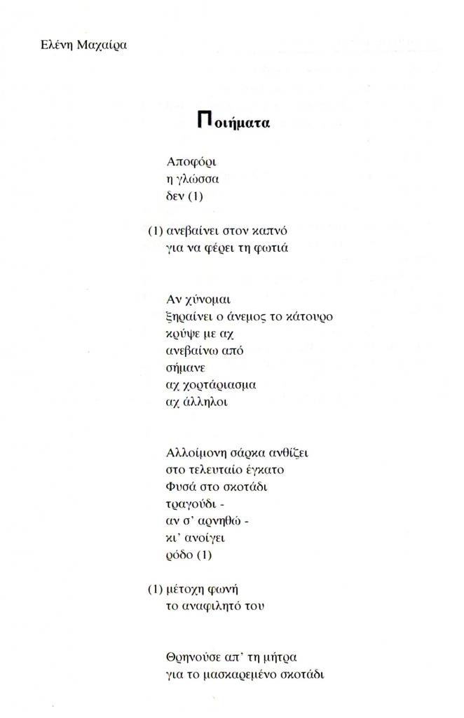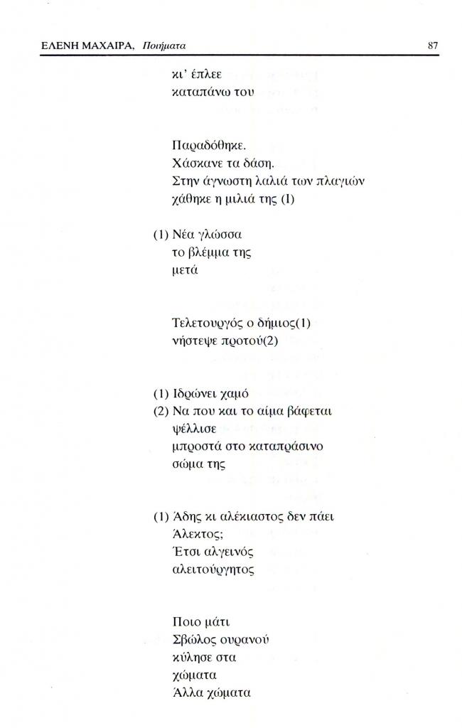 Μαχαίρα Ελένη, «Ποιήματα», Εξώπολις, τχ. 10-11 (Χειμώνας-Άνοιξη 1999), σ. 86-89