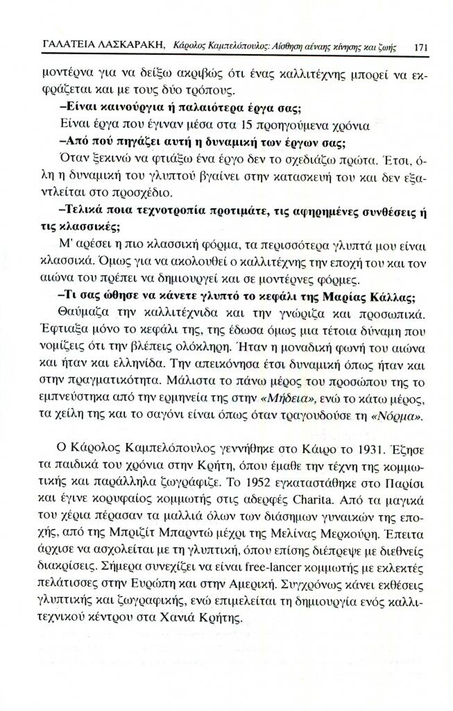 , «Κάρολος Καμπελόπουλος: Αίσθηση αέναης κίνησης και ζωής»,