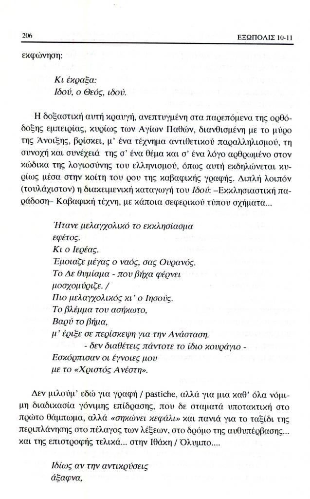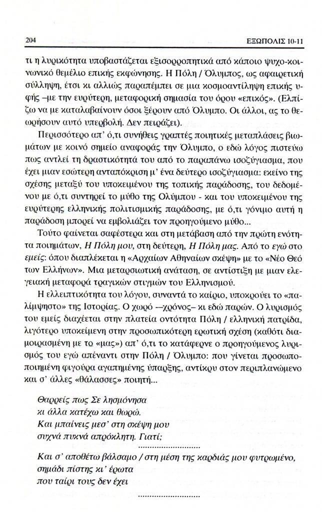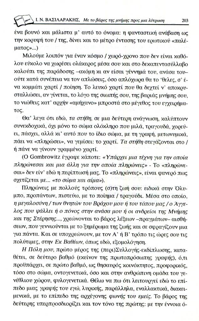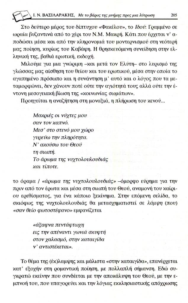 , «Με το βάρος της μνήμης προς μια λύτρωση. Ιωάννης Μ. Μηνατσής, Εκ βαθέων-Ιδού. Ρόδος 1995. Εικονογράφηση Μάνου Αναστασιάδη», Εξώπολις, τχ. 10-11 (Χειμώνας-Άνοιξη 1999), σ. 202-207
