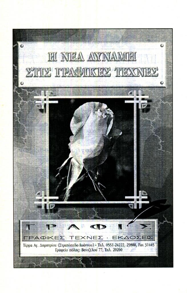 «Γραφίς. Γραφικές τέχνες – Εκδόσεις», Εξώπολις, τχ. 14 (Φθινόπωρο 2000), σ. 164