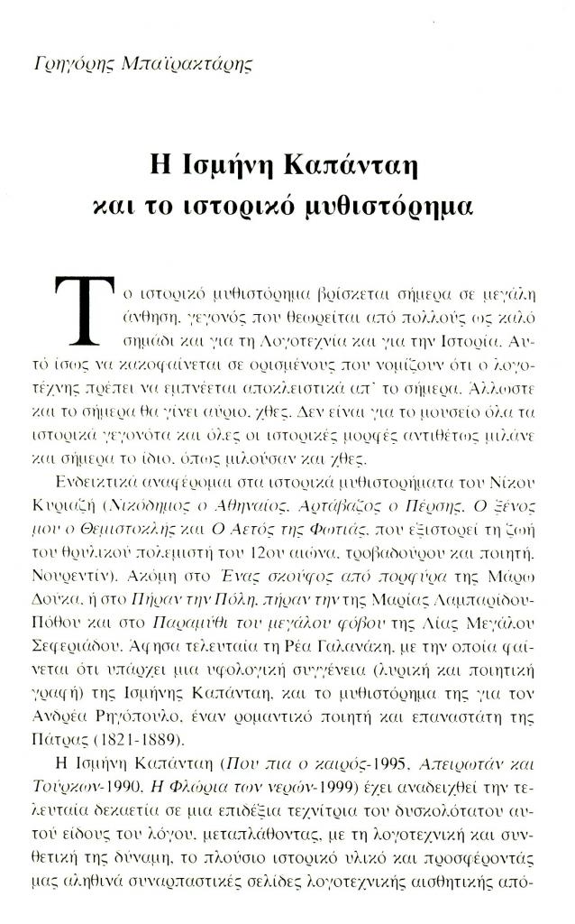 , «Η Ισμήνη Καπάνταη και το ιστορικό μυθιστόρημα»,