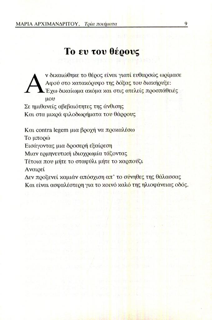 , «Τρία ποιήματα. Το ευ του θέρους»,