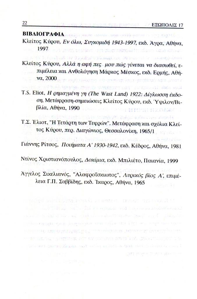 , «Εισαγωγή στην ποίηση του Κλείτου Κύρου »,