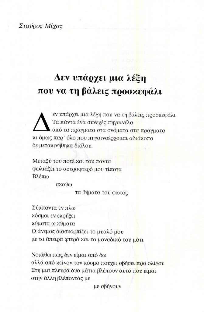 , «Τρία ποιήματα. Δεν υπάρχει μια λέξη που να τη βάλεις προσκεφάλι»,
