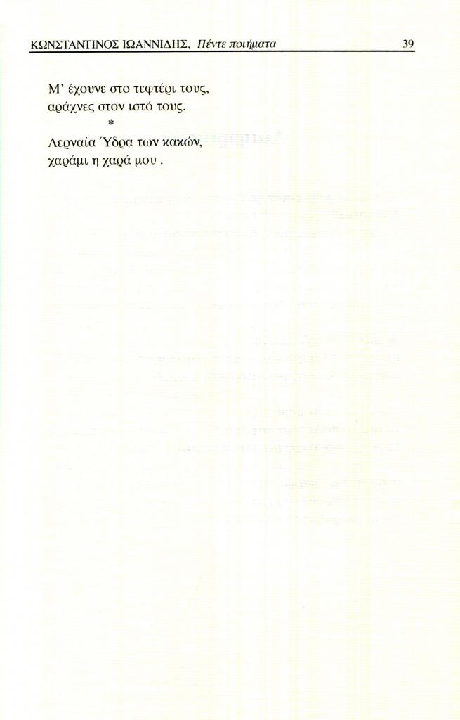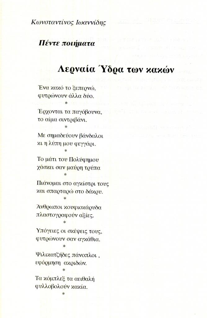 , «Πέντε ποιήματα. Λερναία Ύδρα των κακών»,