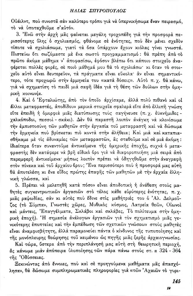 , «Η διδασκαλεία της Οδύσσειας από μεταφράσεις. Εισήγηση δεύτερη: Πραγματολογικά», Φιλόλογος, τχ. 3 (Μάρτιος 1965), σ. 142-146