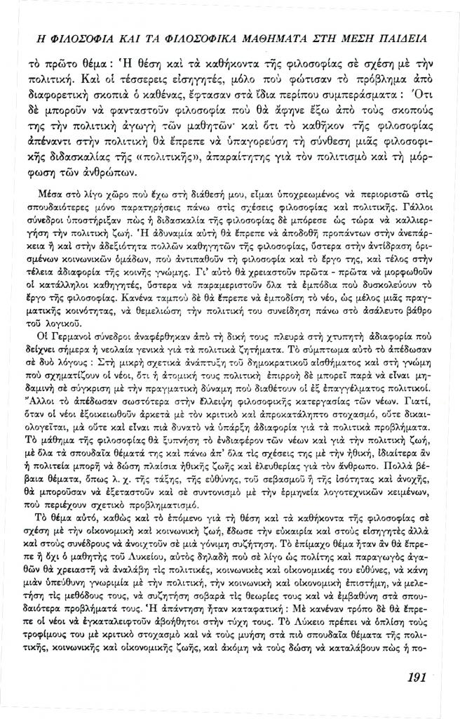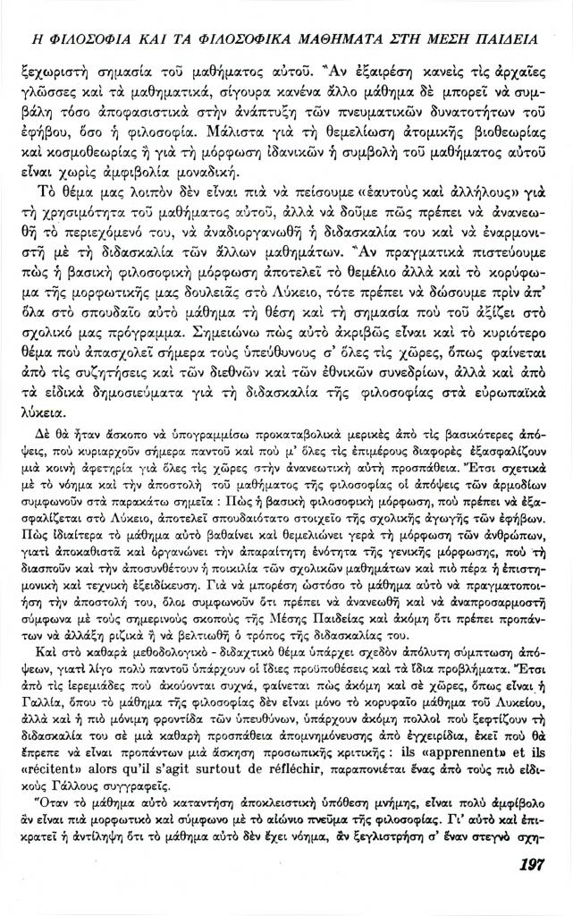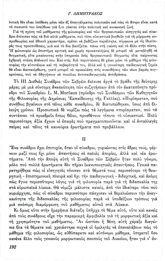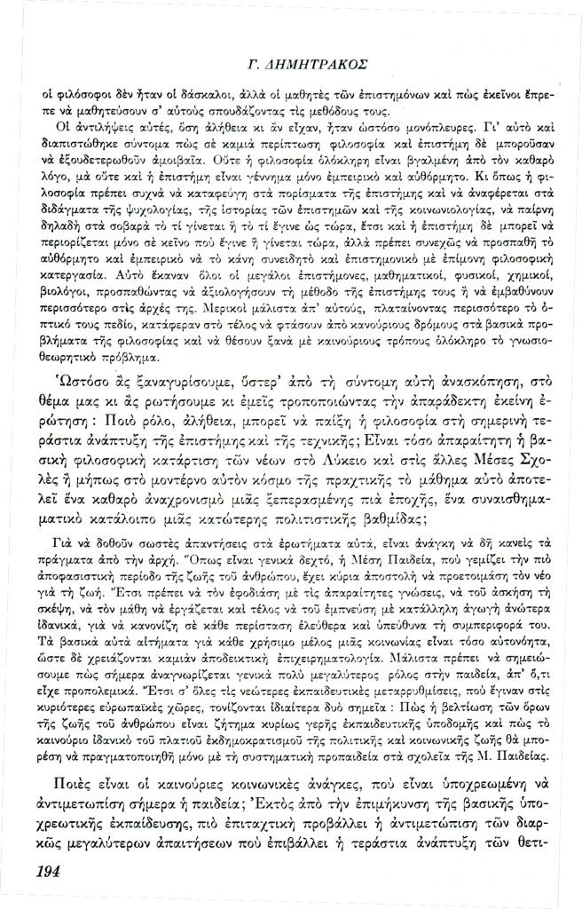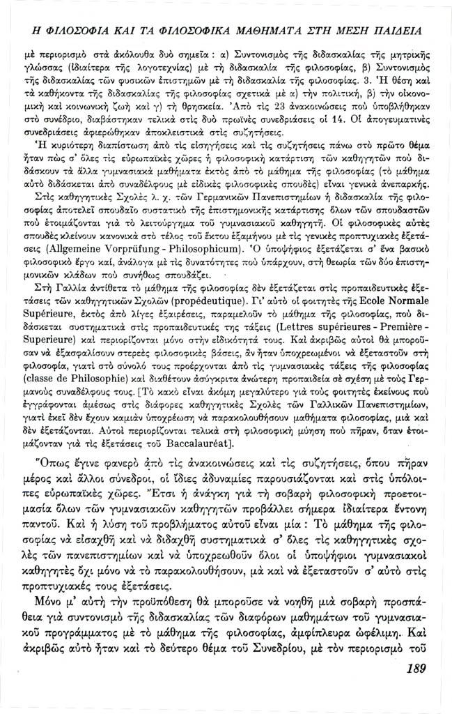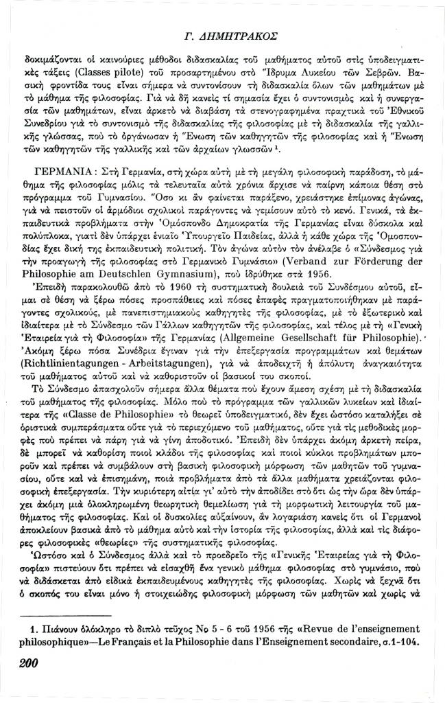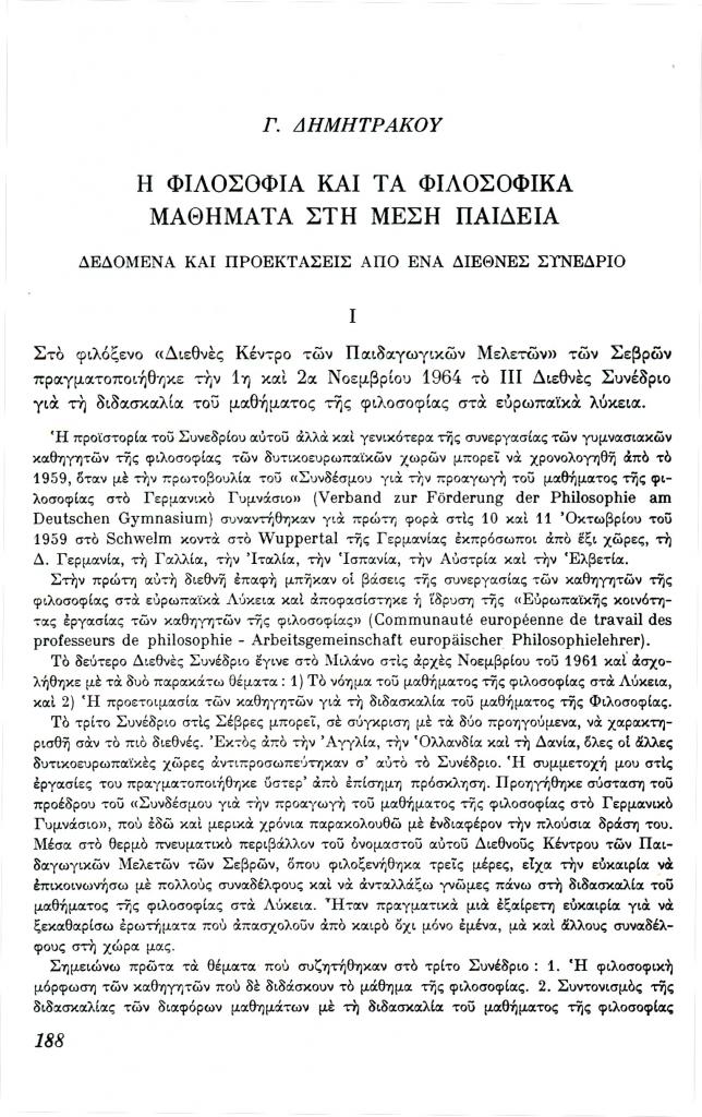 Δημητράκος Γιάννης, «Η Φιλοσοφία και τα φιλοσοφικά μαθήματα στη μέση παιδεία. Δεδομένα και προεκτάσεις από ένα διεθνές συνέδριο », Φιλόλογος, τχ. 4 (Ιούνιος 1965), σ. 188-207