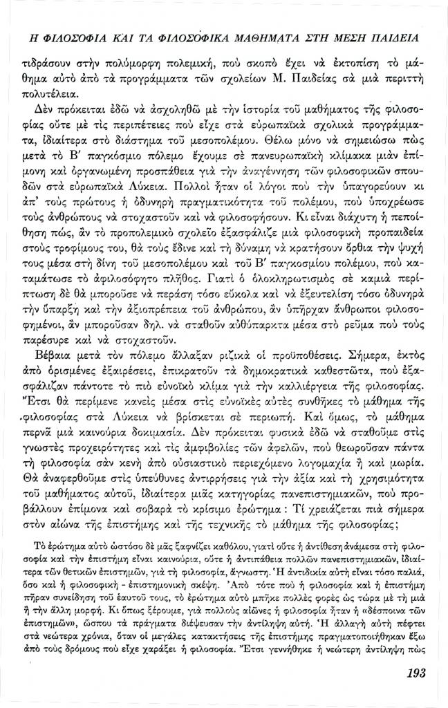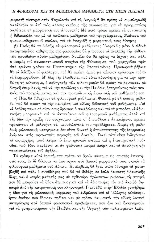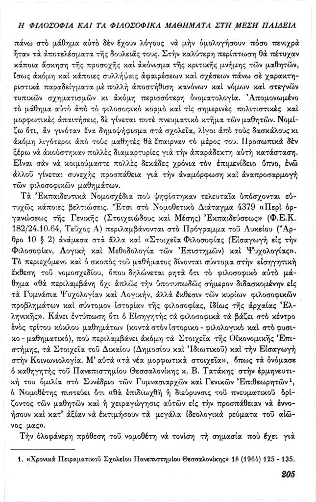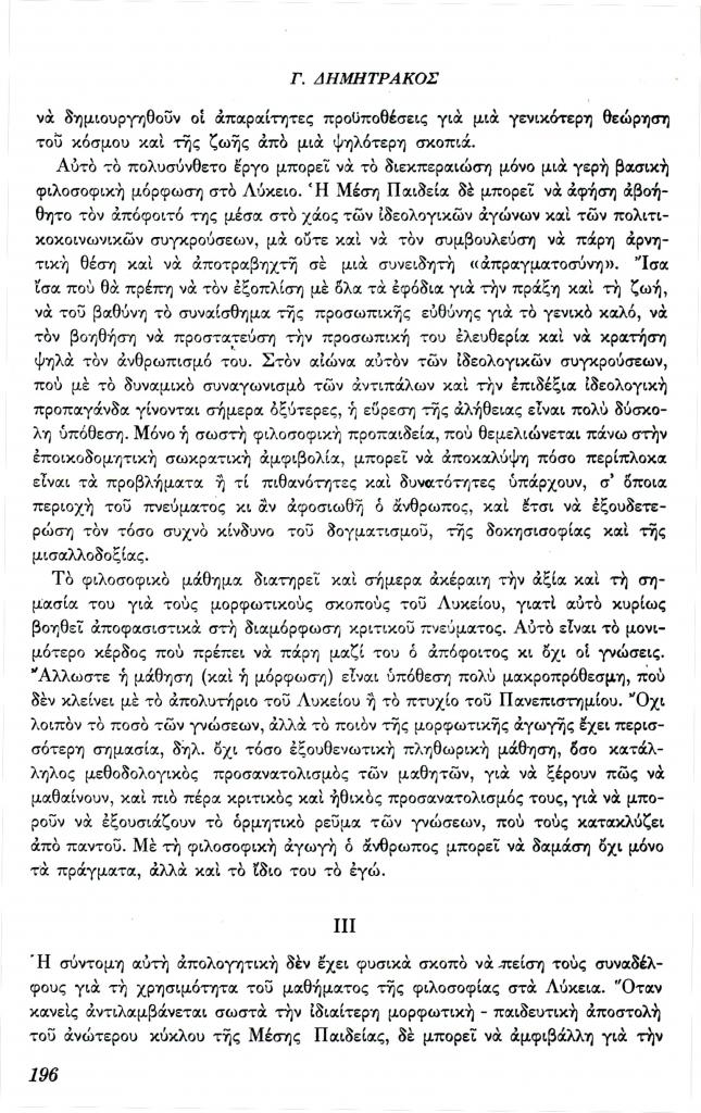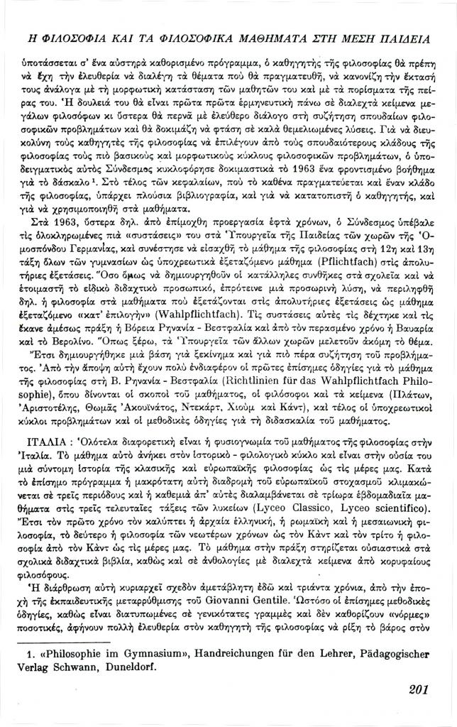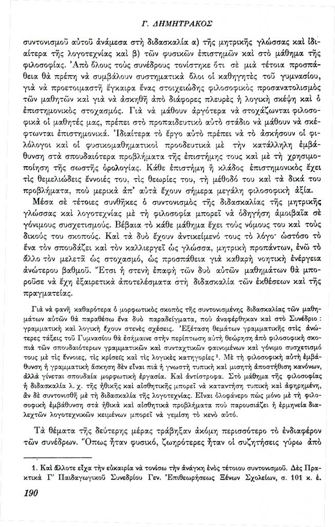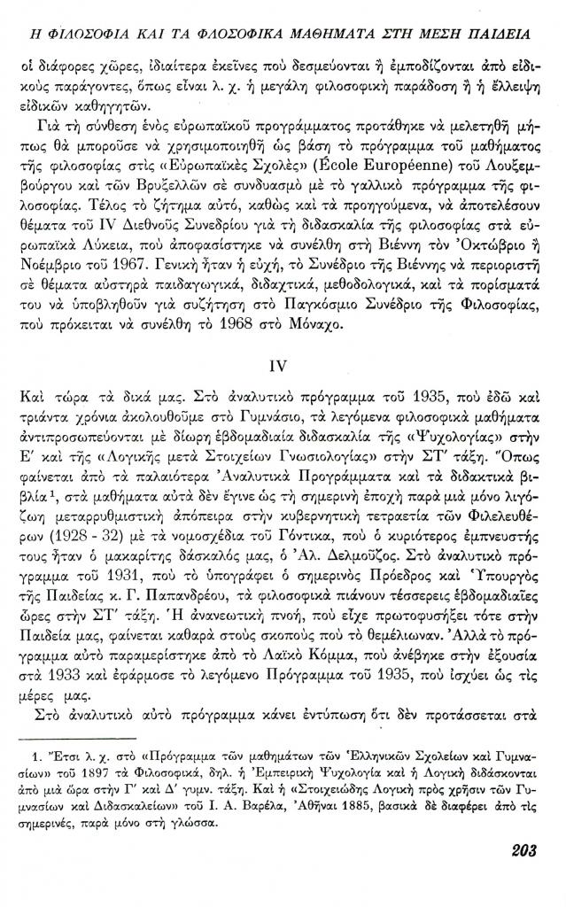 Δημητράκος Γιάννης, «Η Φιλοσοφία και τα φιλοσοφικά μαθήματα στη μέση παιδεία. Δεδομένα και προεκτάσεις από ένα διεθνές συνέδριο », Φιλόλογος, τχ. 4 (Ιούνιος 1965), σ. 188-207