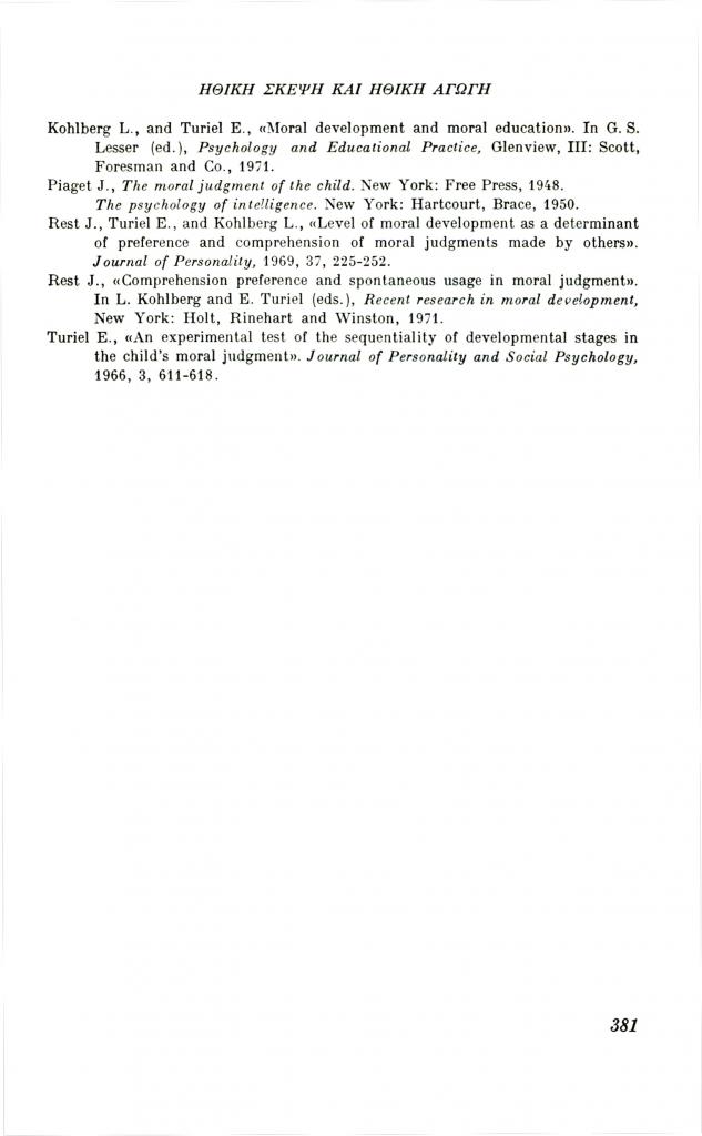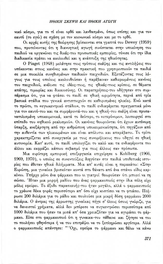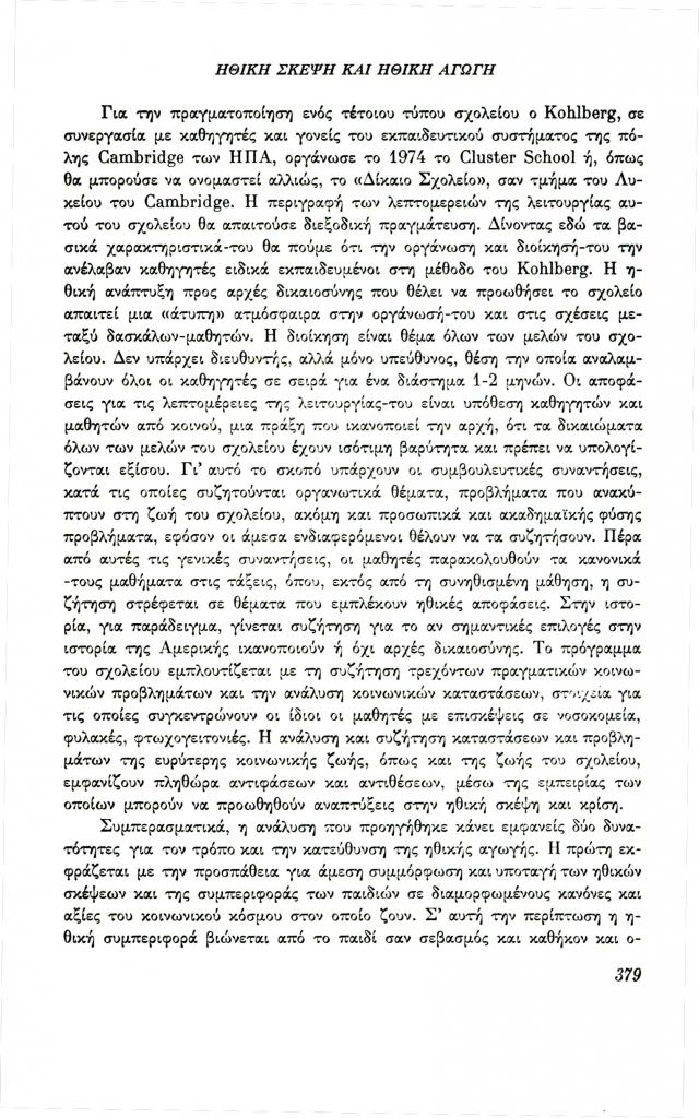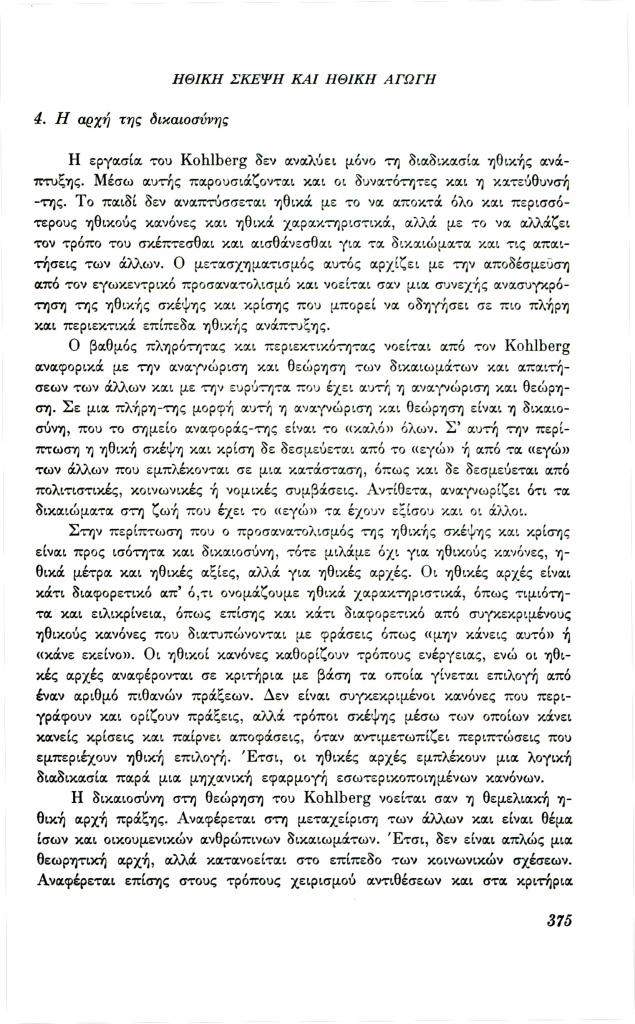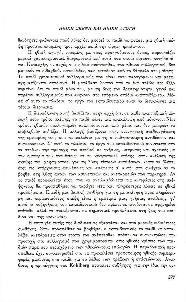 , «Ανάπτυξη της ηθικής σκέψης και ηθική αγωγή»,