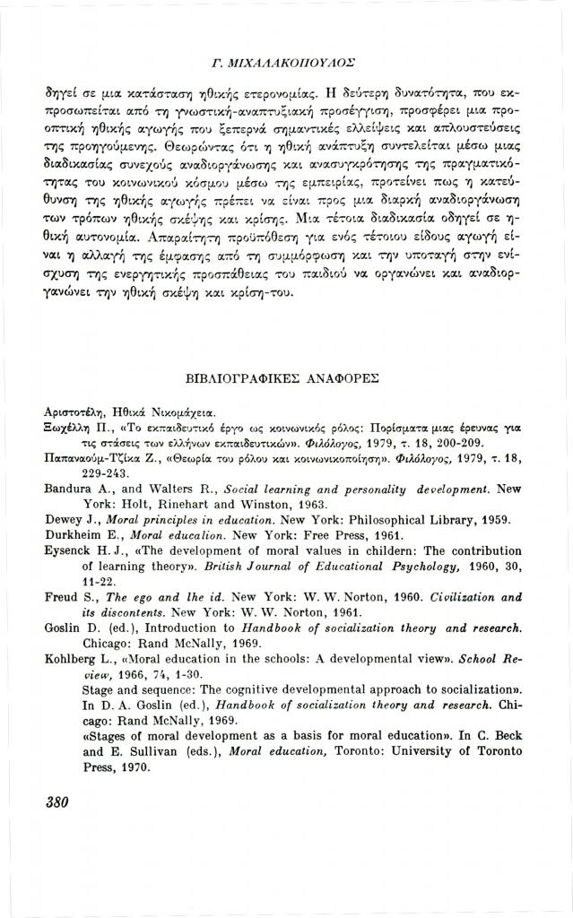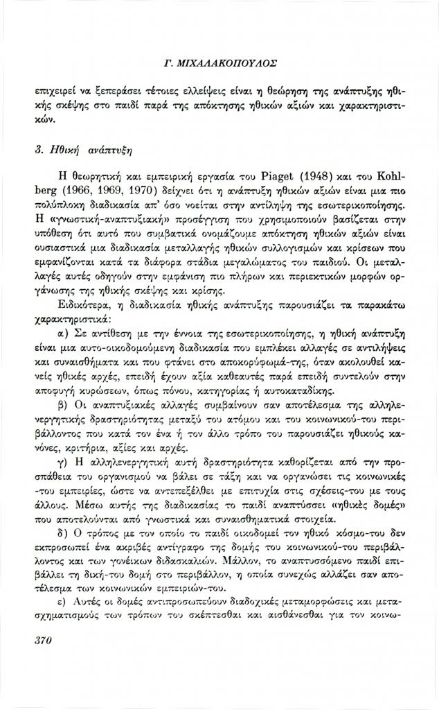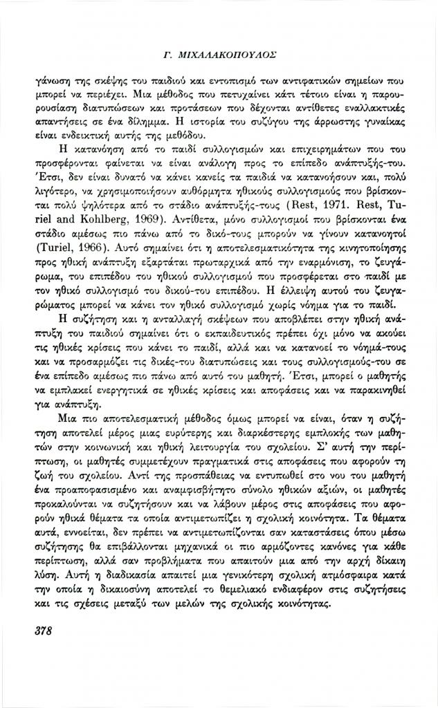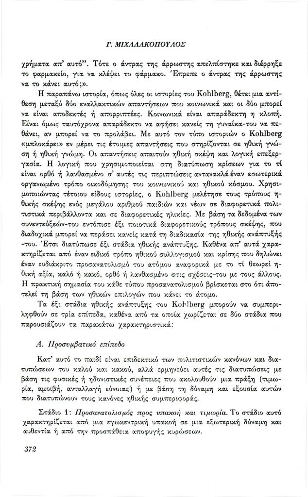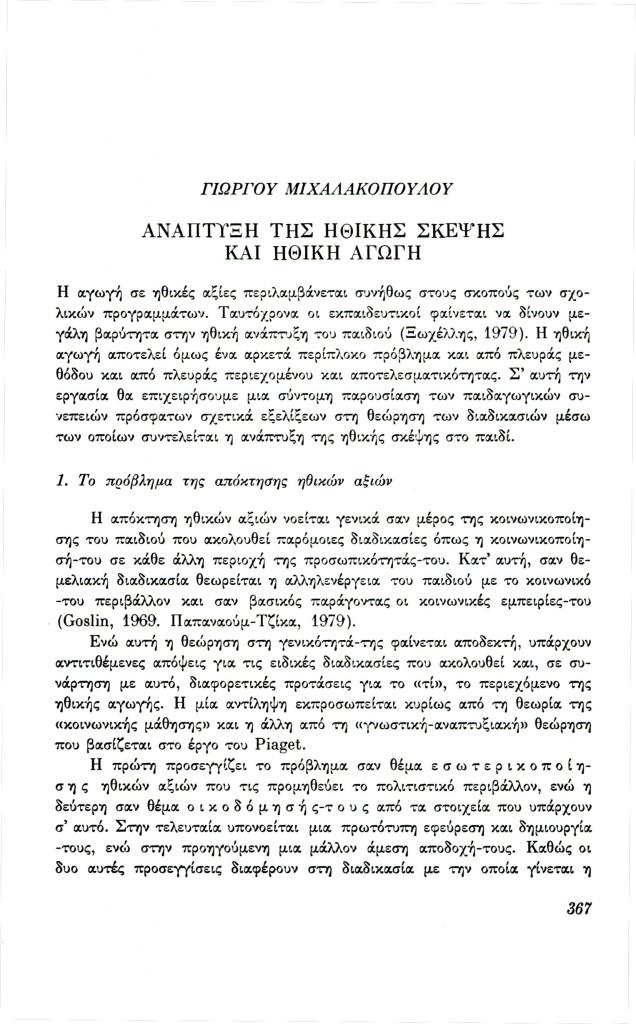 , «Ανάπτυξη της ηθικής σκέψης και ηθική αγωγή»,
