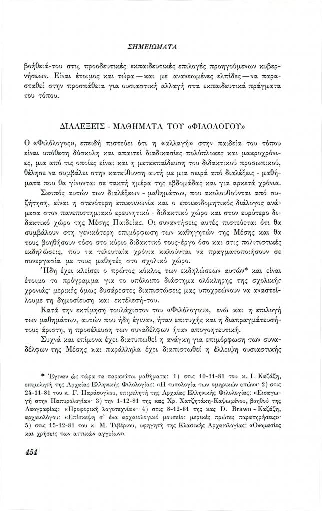 , «Σημειώματα. Διαλέξεις-μαθήματα του Φιλολόγου»,