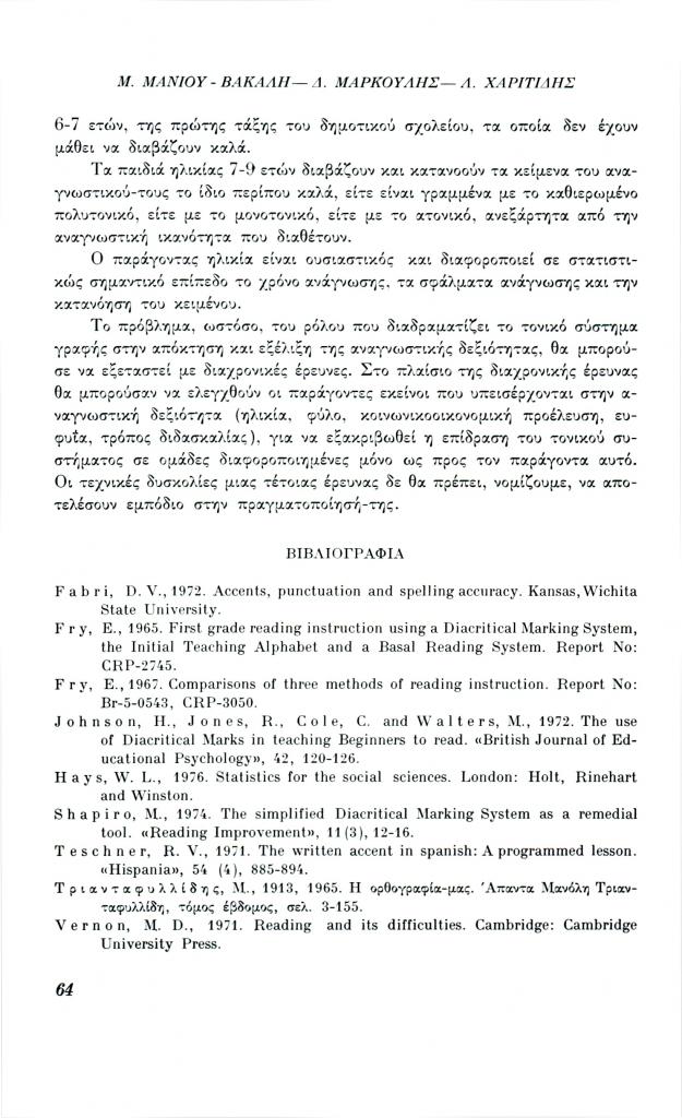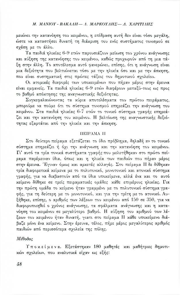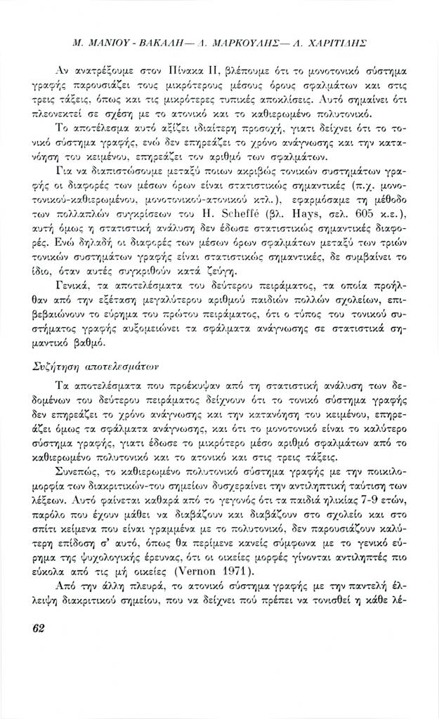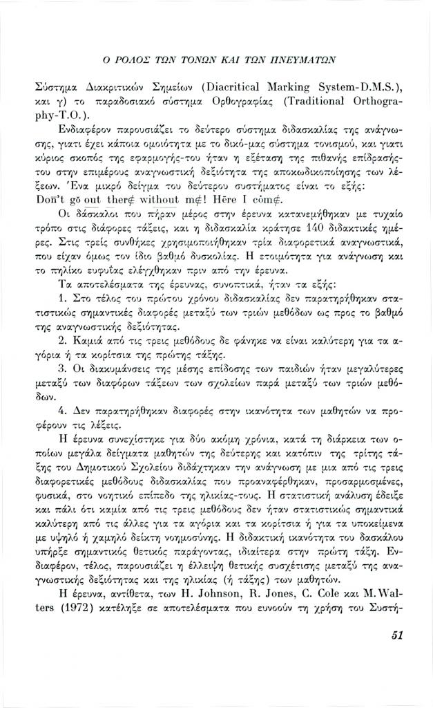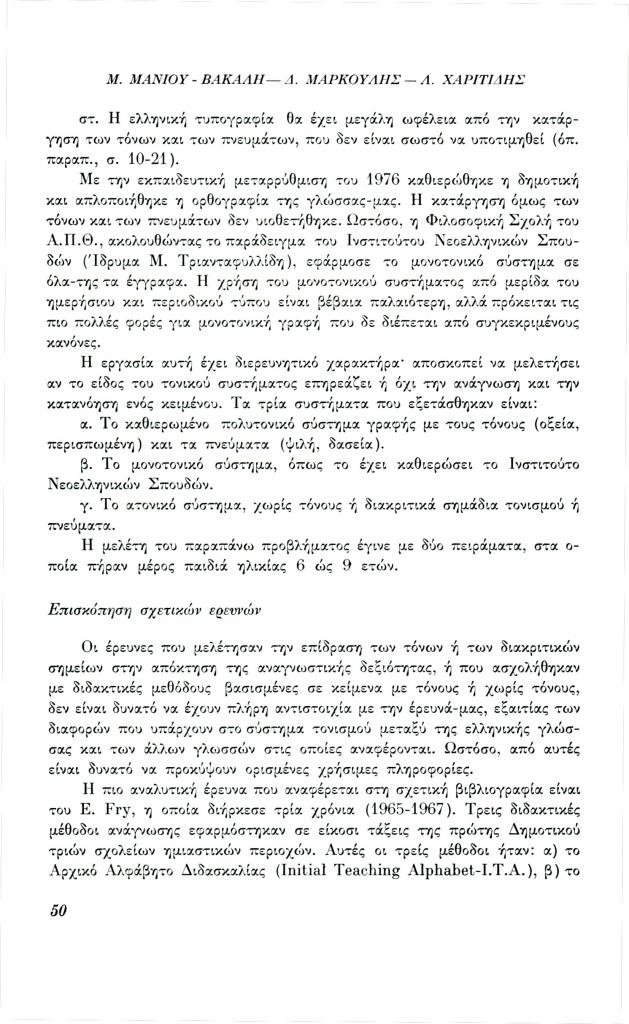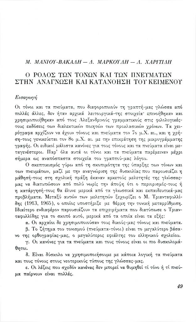 , «Ο ρόλος των τόνων και των πνευμάτων στην ανάγνωση και κατανόηση του κειμένου», Φιλόλογος, τχ. 27 (Μάρτιος 1982), σ. 49-64