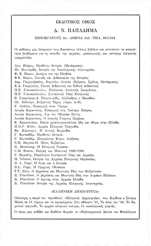 «Ελληνική δημιουργία», Φιλόλογος, τχ. 27 (Μάρτιος 1982), σ. 68